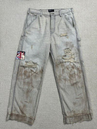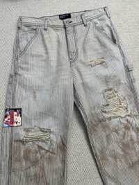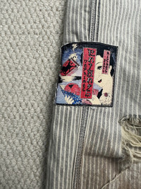 Enfants Riches Deprimes Geisha patch mud-dyed destroyed stripe overalls