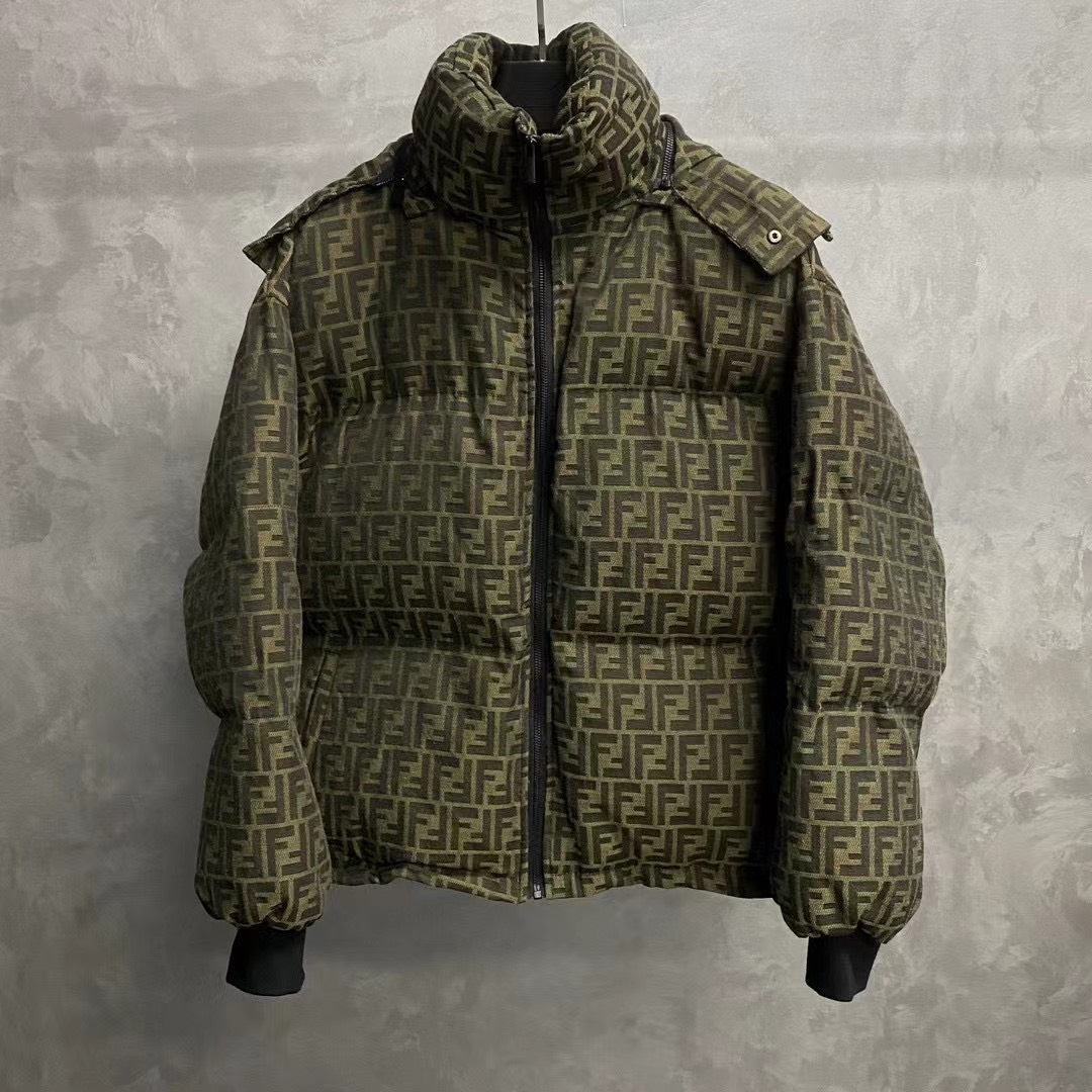 Fendi brown all-over logo down jacket