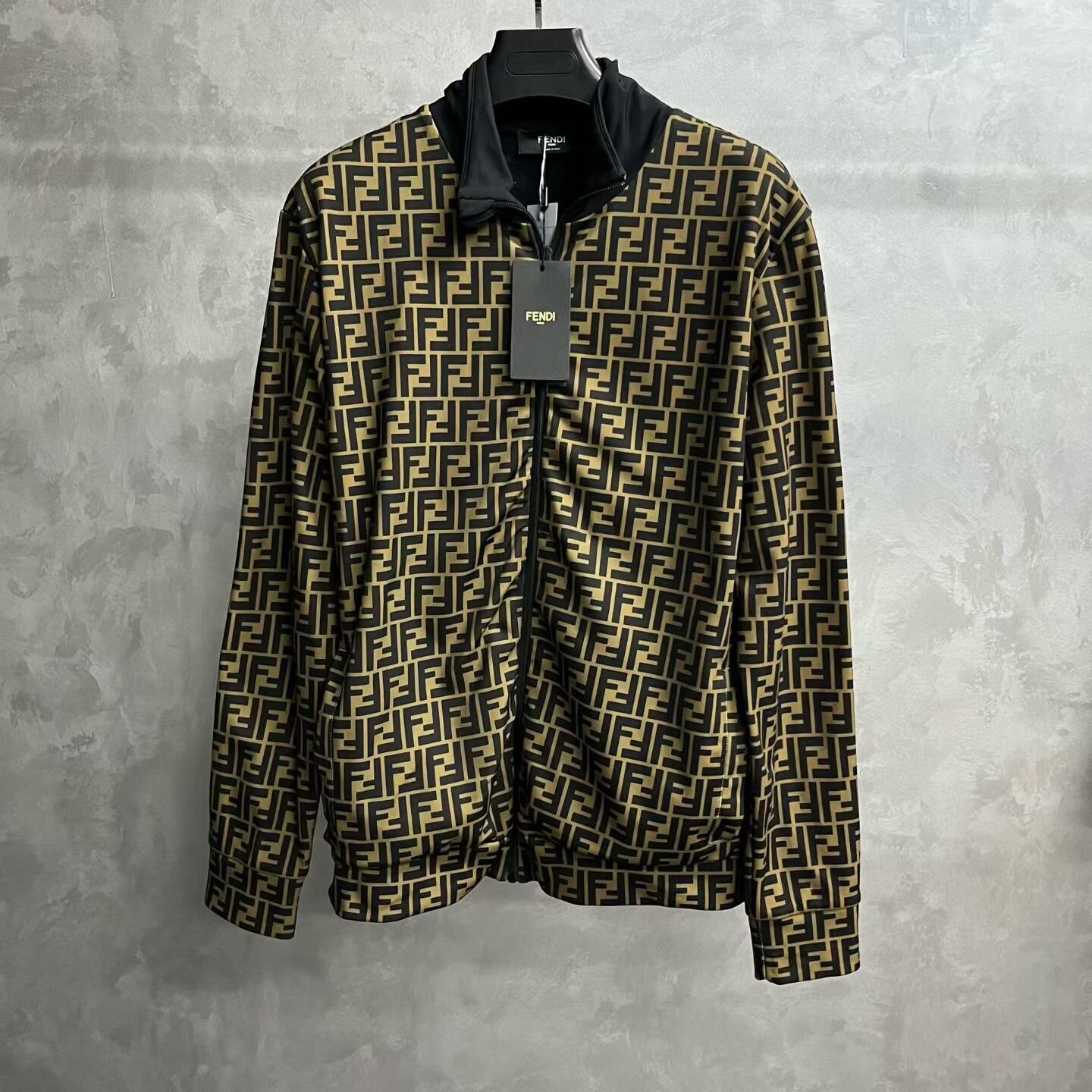 Fendi Dark Brown Vintage FF-Print Zip Jacket