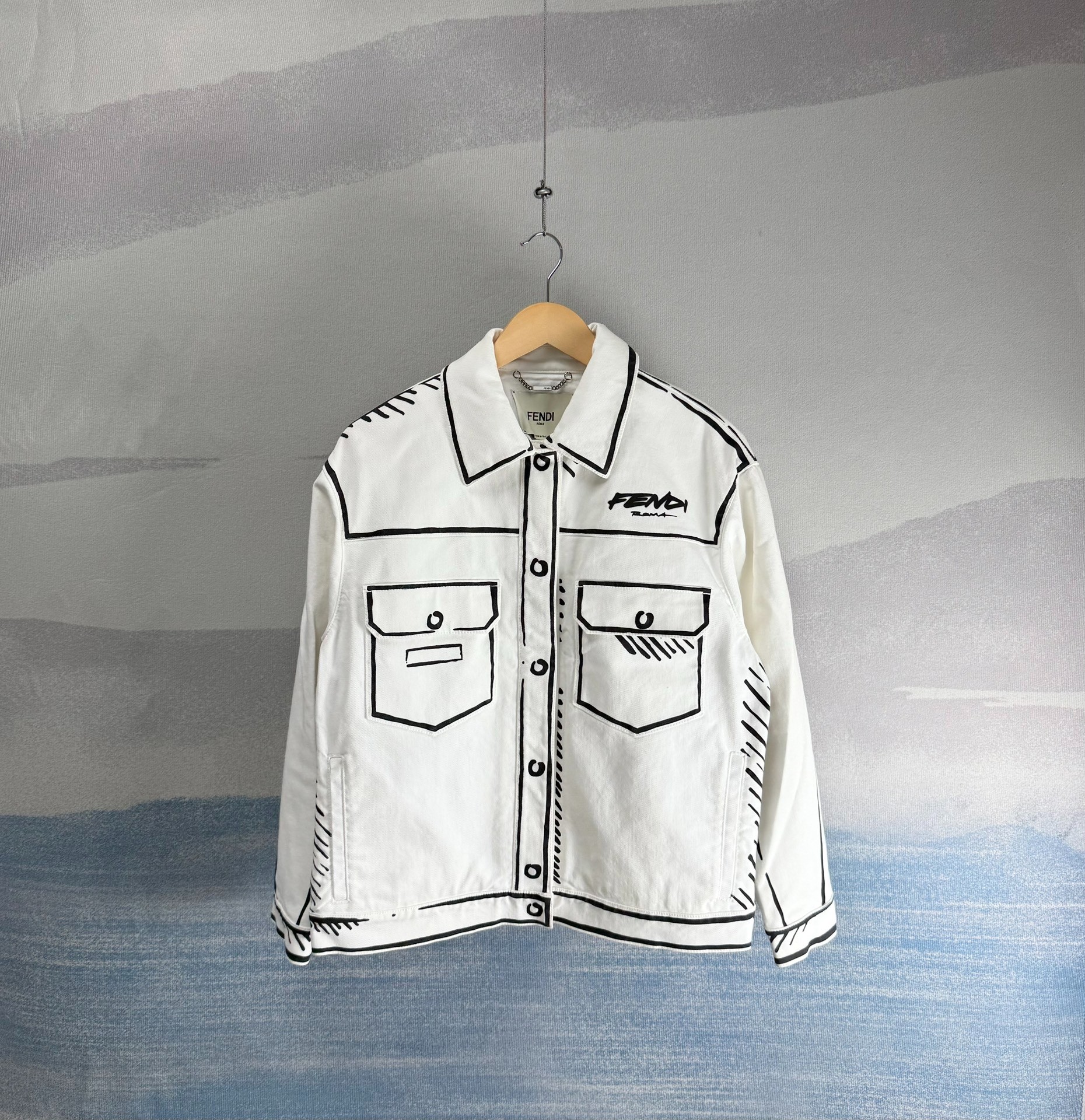 Fendi White California Sky Hand-Painted Denim Jacket