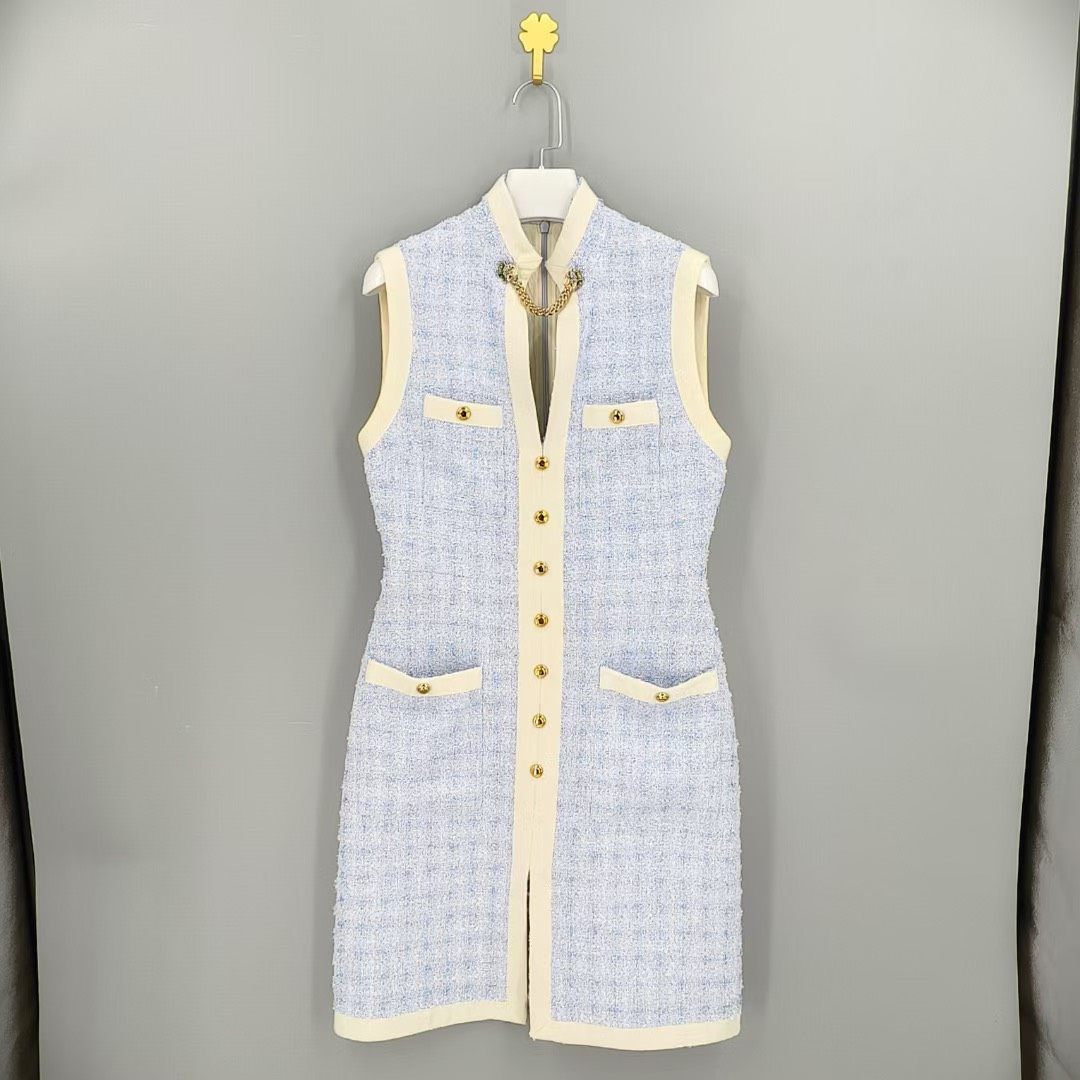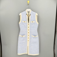 Gucci light blue tweed woven dress in a Chanel-inspired style.