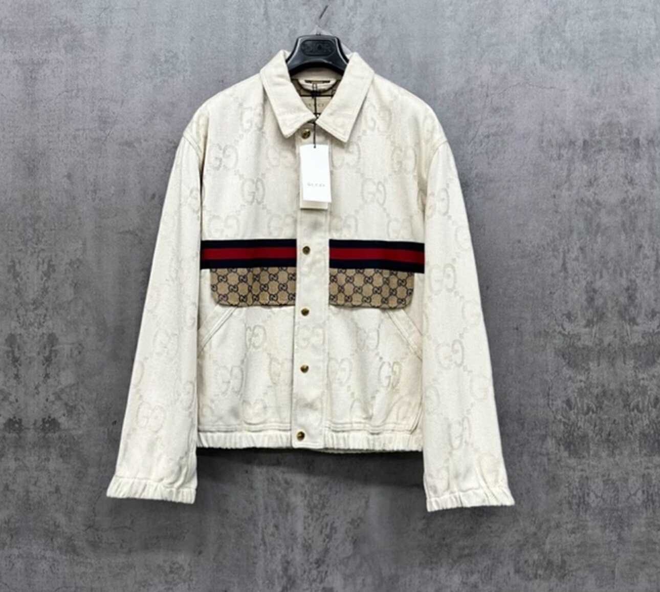Gucci New All-Logo Embroidered Button-Up Zipper Jacket