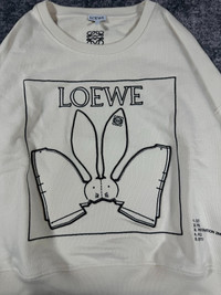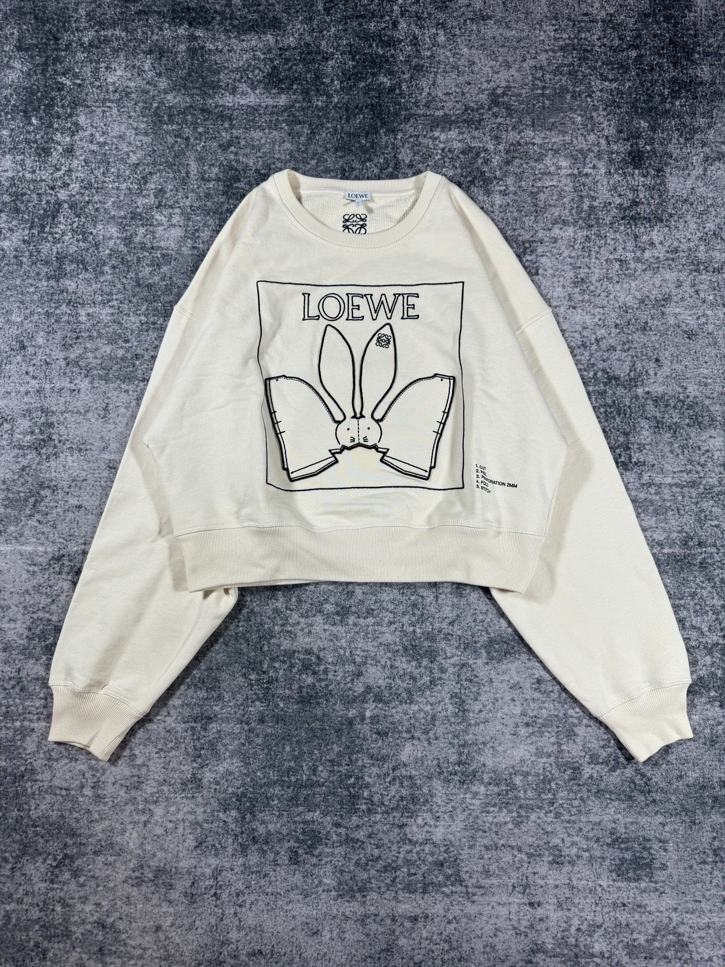 Loewe ivory white short sweatshirt with rabbit embroidery logo.