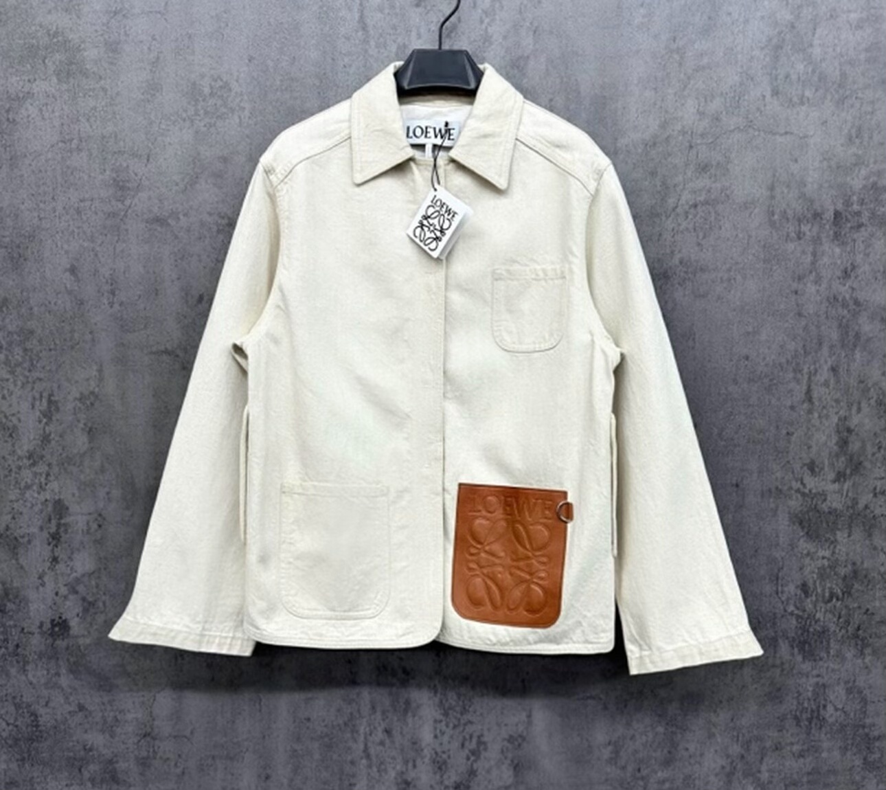 LOEWE New Heavyweight Leather-Patchwork Embossed Logo Button-Up Jacket