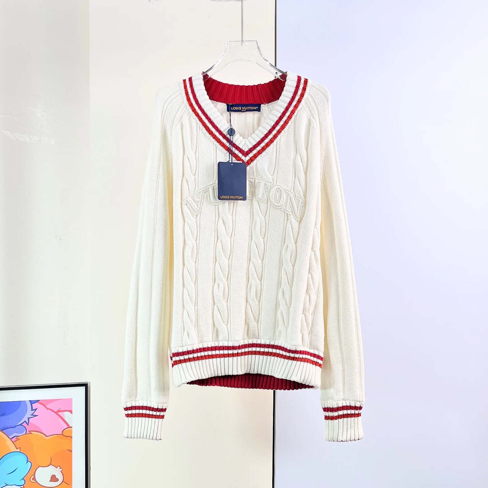 Louis Vuitton 26 new beige V-neck knitted sweater