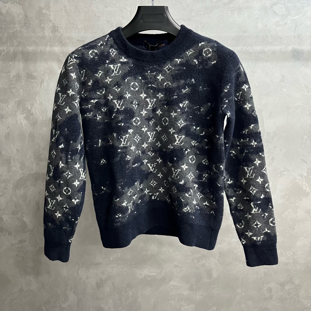 Louis Vuitton all-over print distressed effect round neck wool long-sleeved sweater