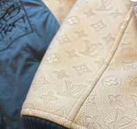 Louis Vuitton Alphanumeric Embroidery Series Cotton-padded Baseball Jacket with Old Flower and Leat