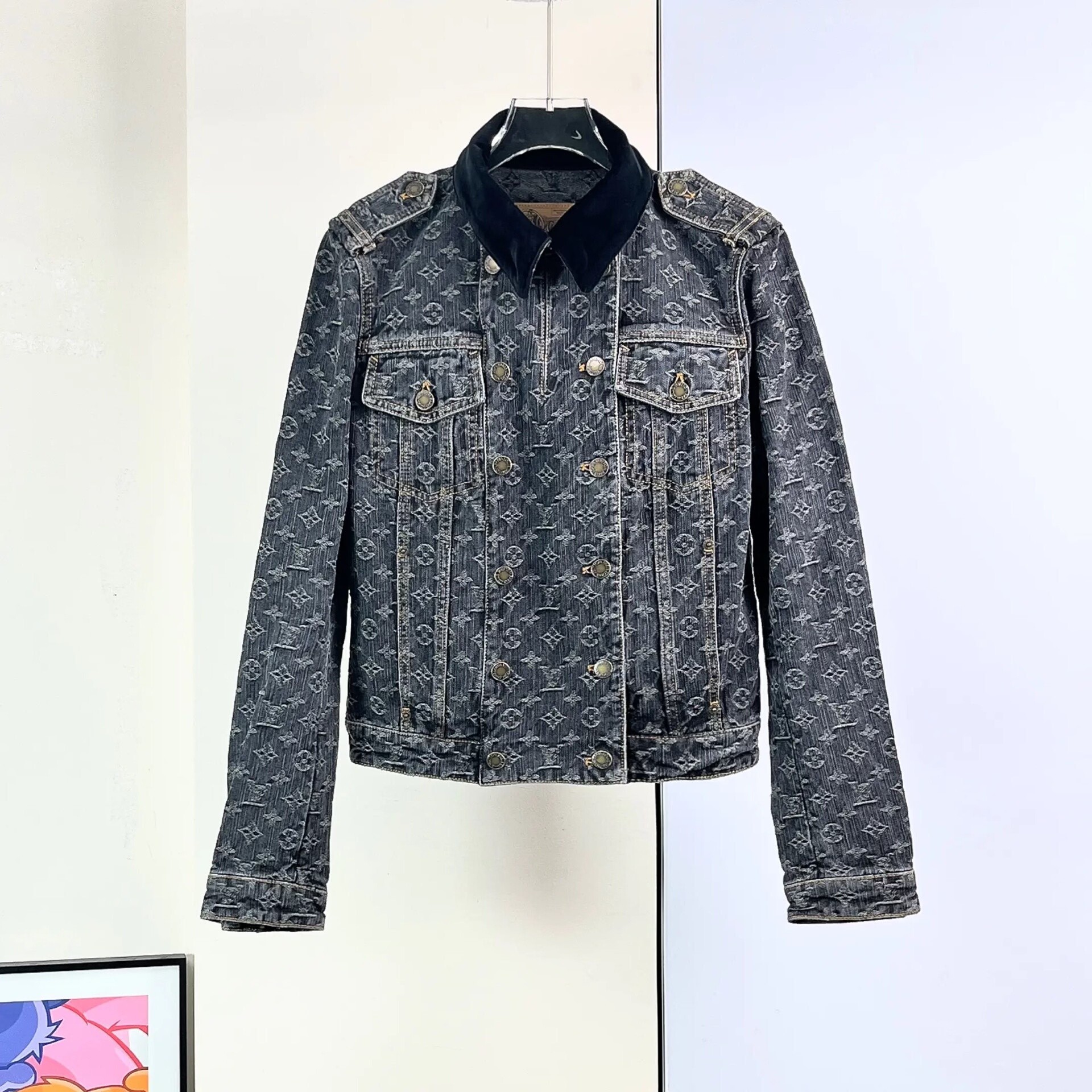 Louis Vuitton black and gray monogram denim jacket