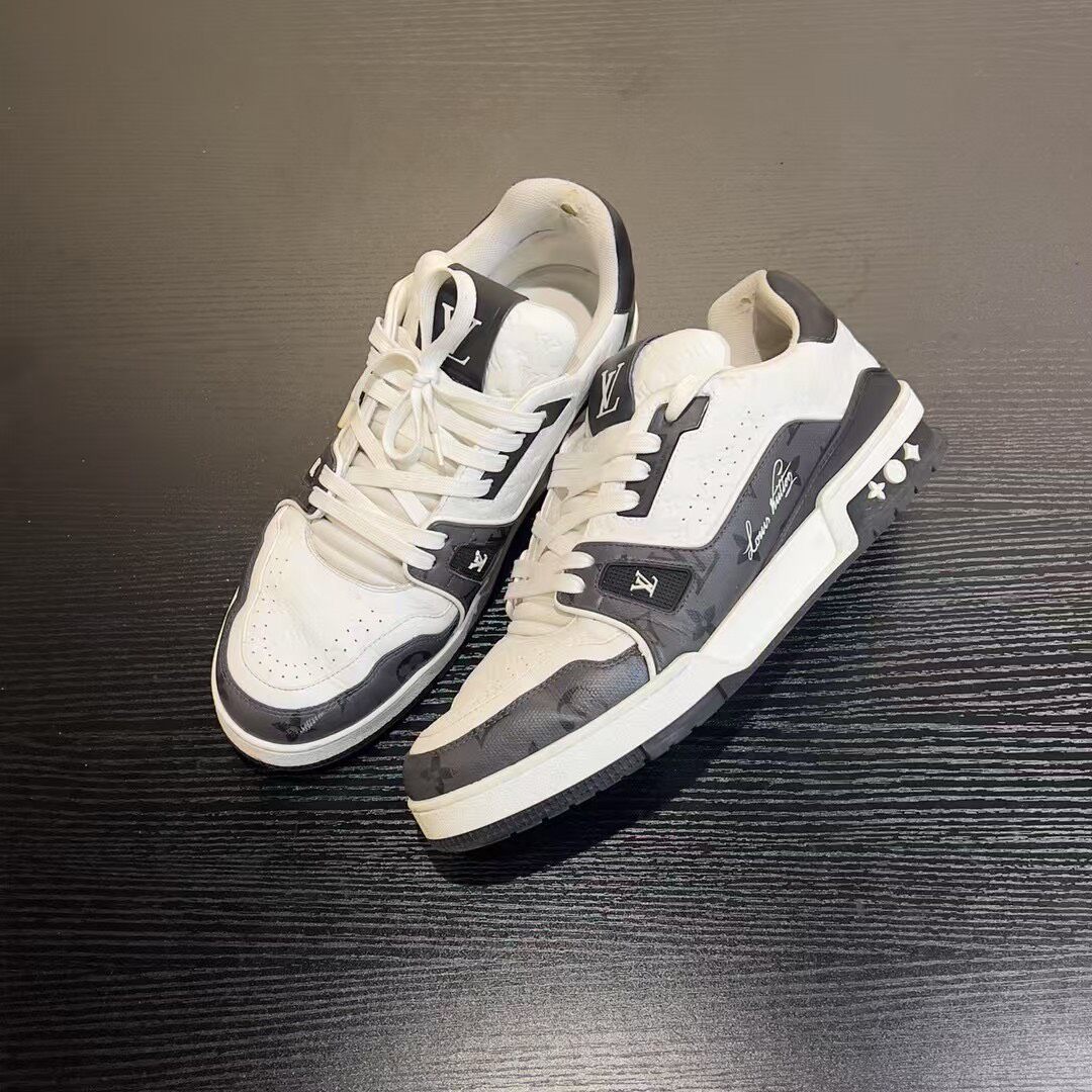 Louis Vuitton black and white embossed logo casual shoes