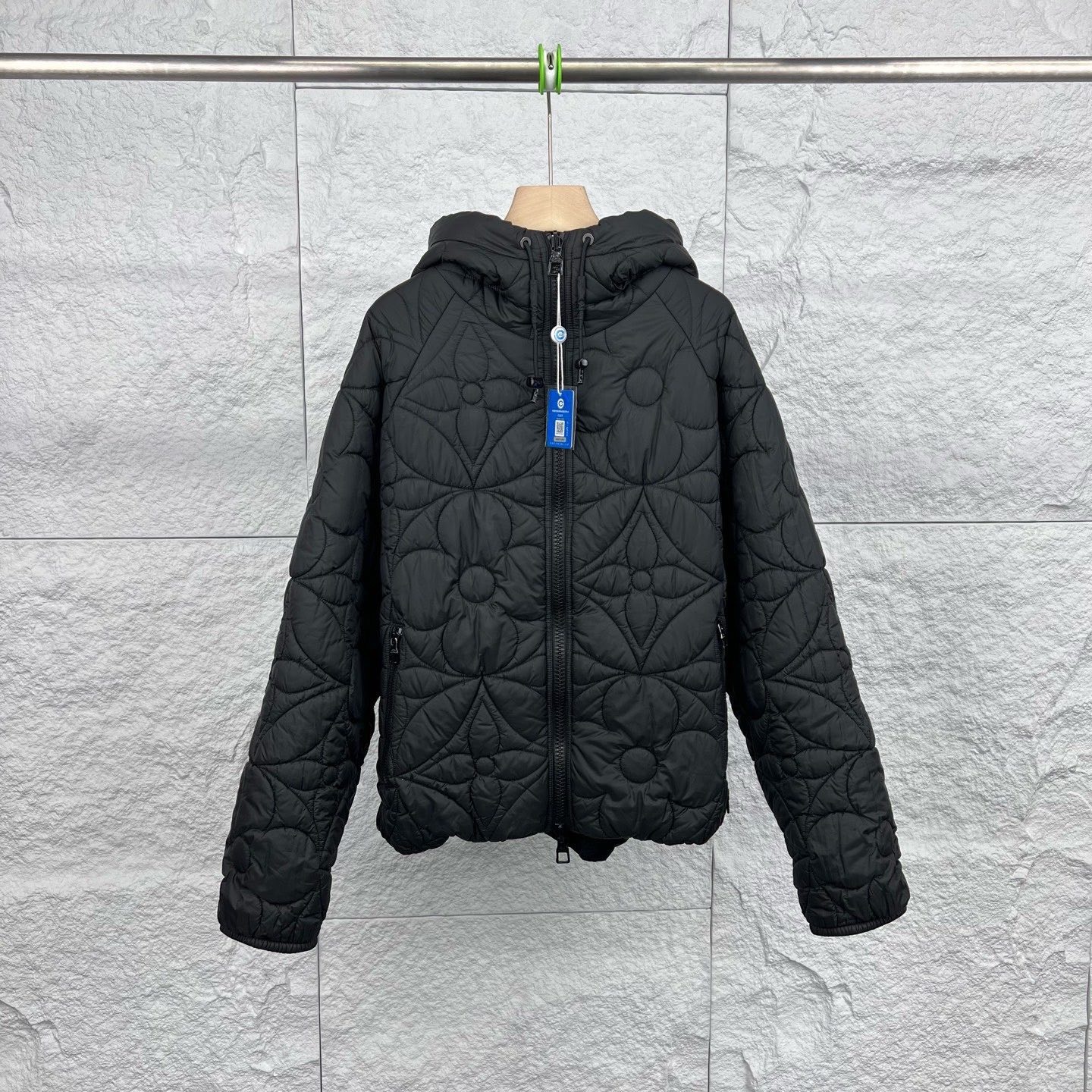 Louis Vuitton Black Double-Sided Floral Print Quilted Hooded Down Jacket