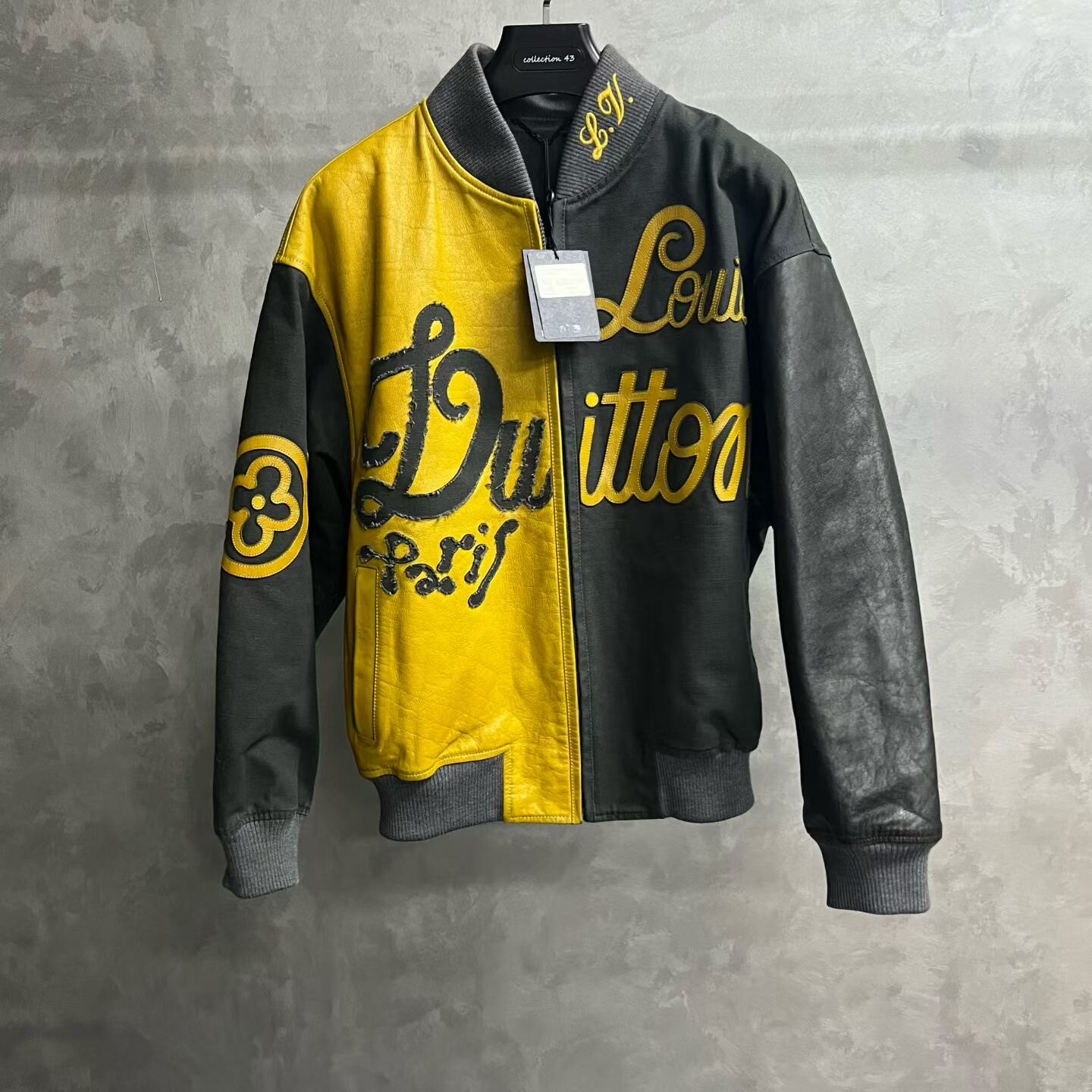 Louis Vuitton Black Zip-Up Bomber Jacket with Contrast Lettering Print