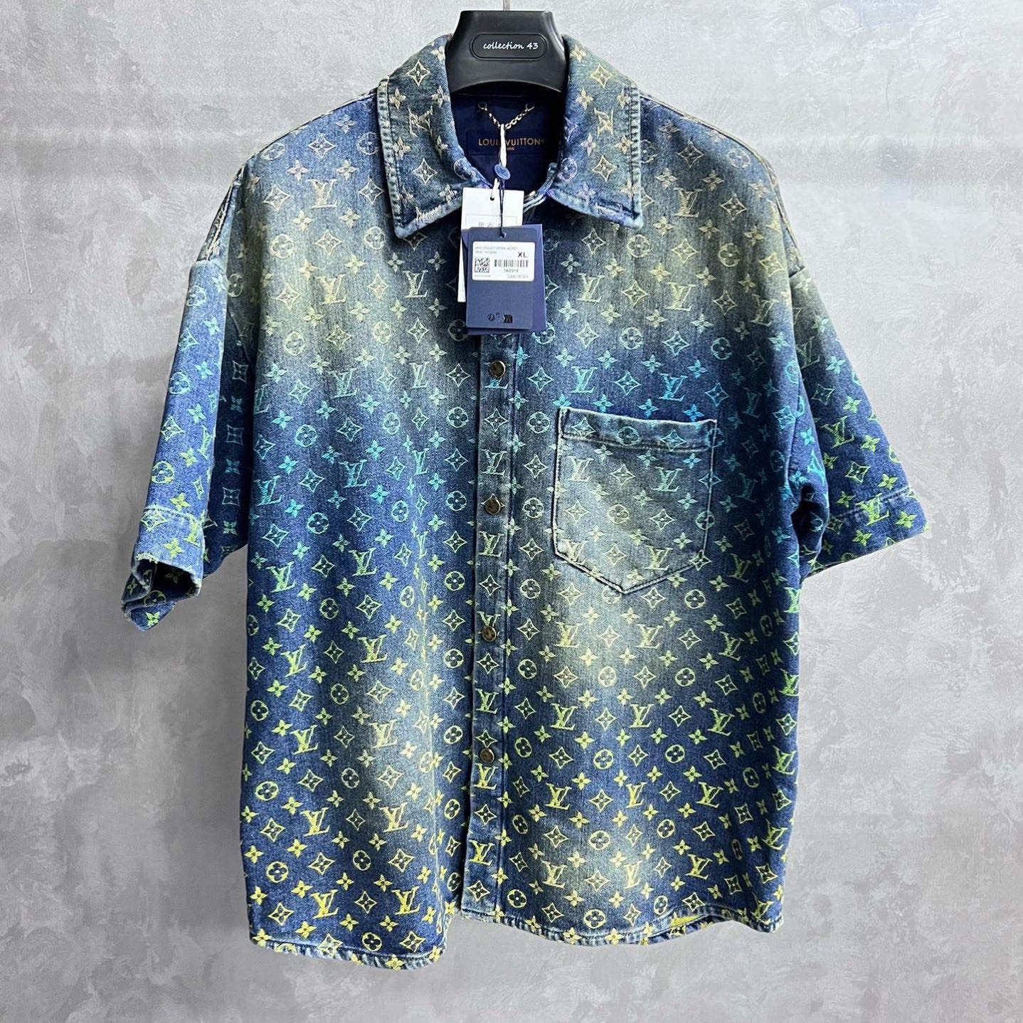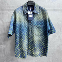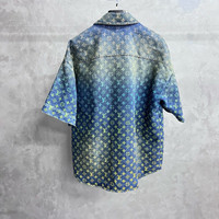 Louis Vuitton blue letter logo jacquard single-breasted denim short-sleeved shirt