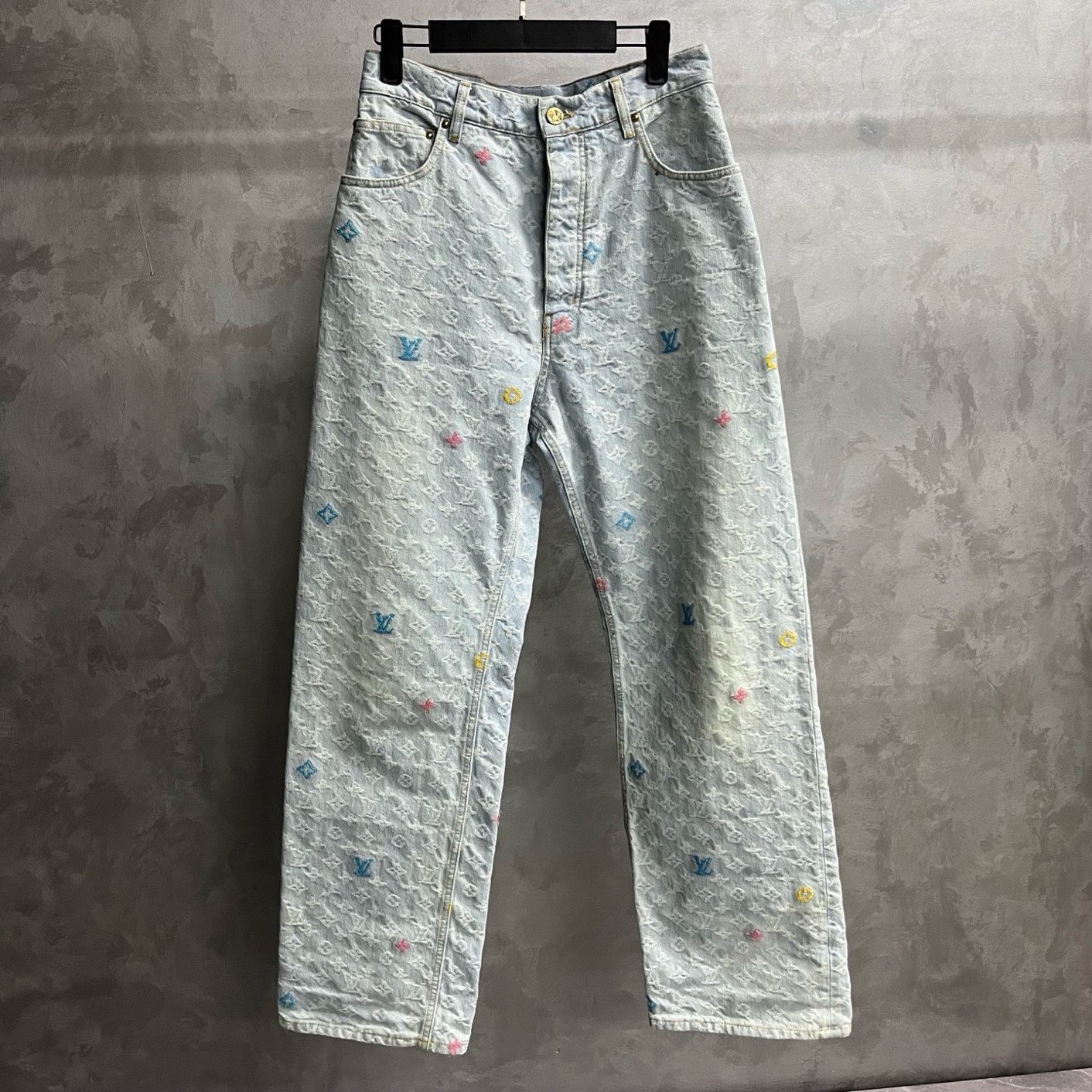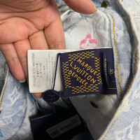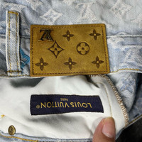Louis Vuitton blue logo lettering print button pocket jeans