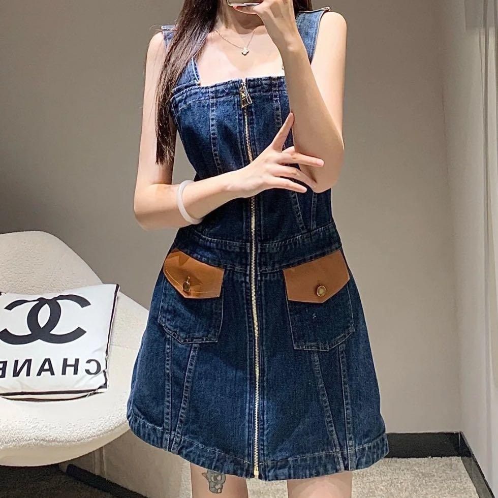 Louis Vuitton denim and leather strap dress