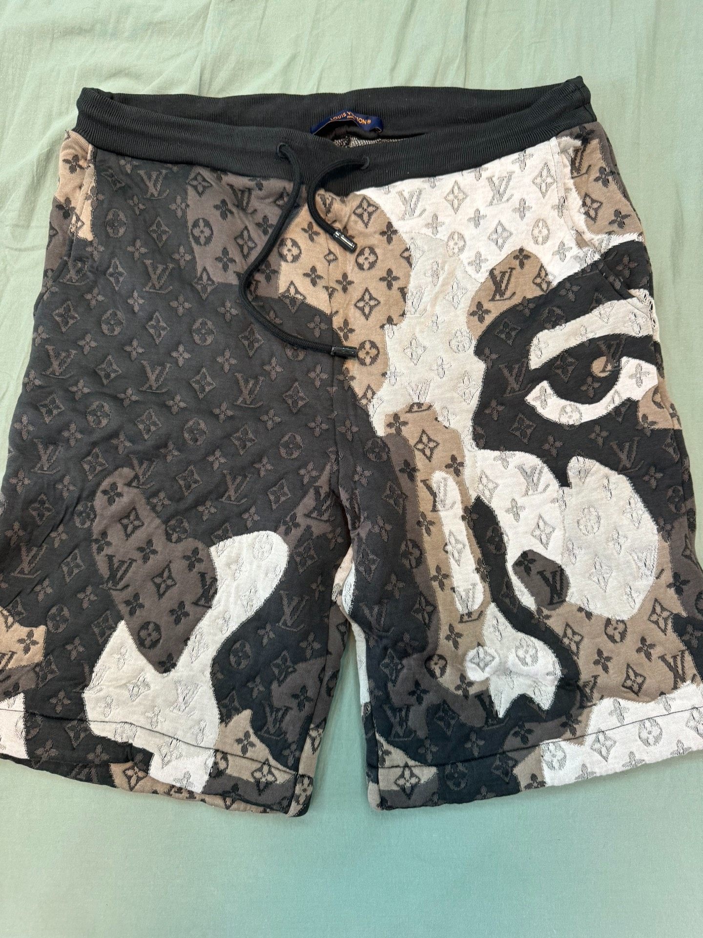 LOUIS VUITTON Geometric pattern print mid-rise drawstring straight-leg casual shorts