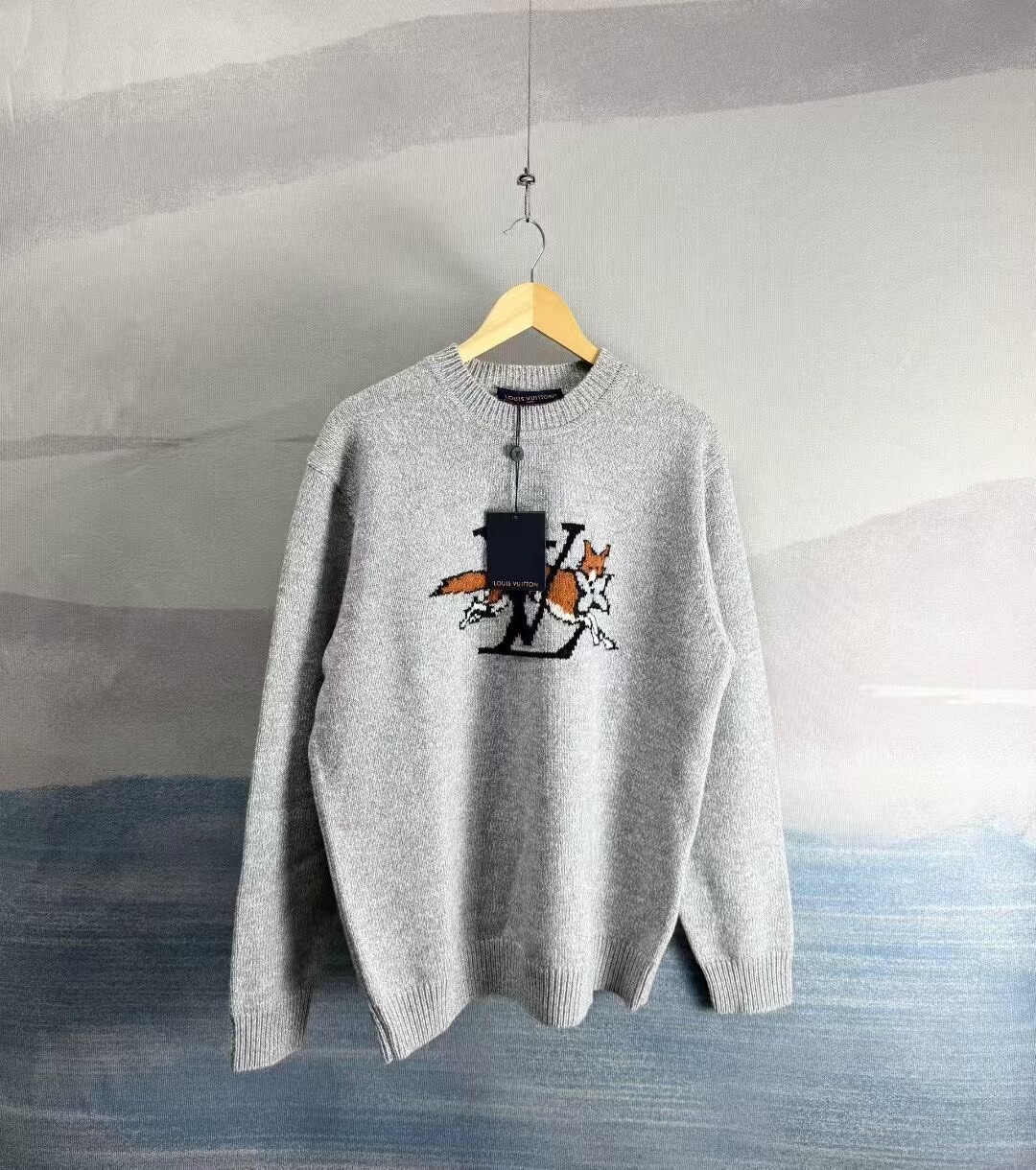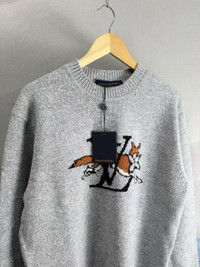 Louis Vuitton gray cashmere knit sweater with fox pattern
