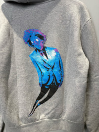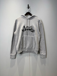 Louis Vuitton Gray Splatter Paint Classic Hoodie with Neon Figure Print on the Back
