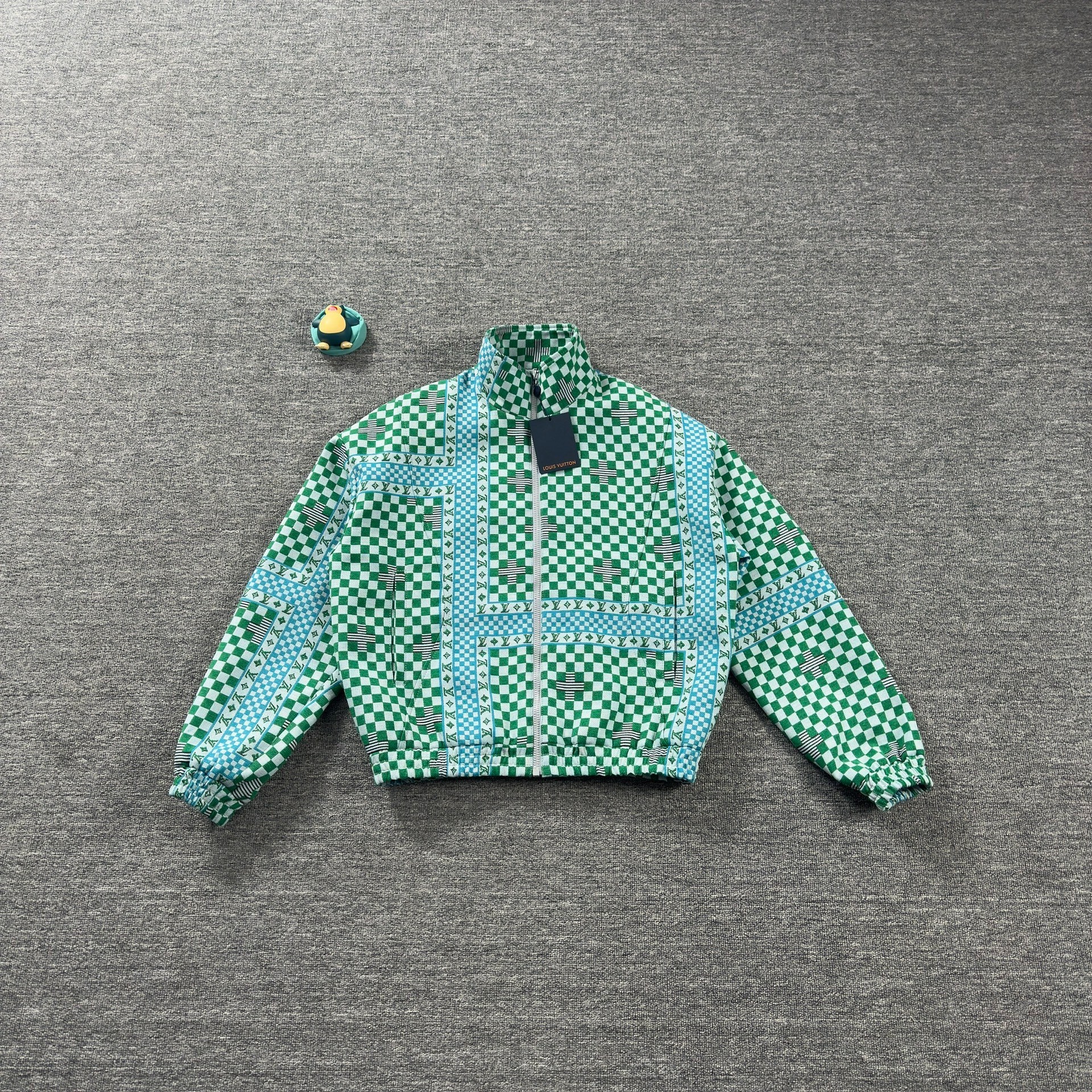 Louis Vuitton green checkered print coat