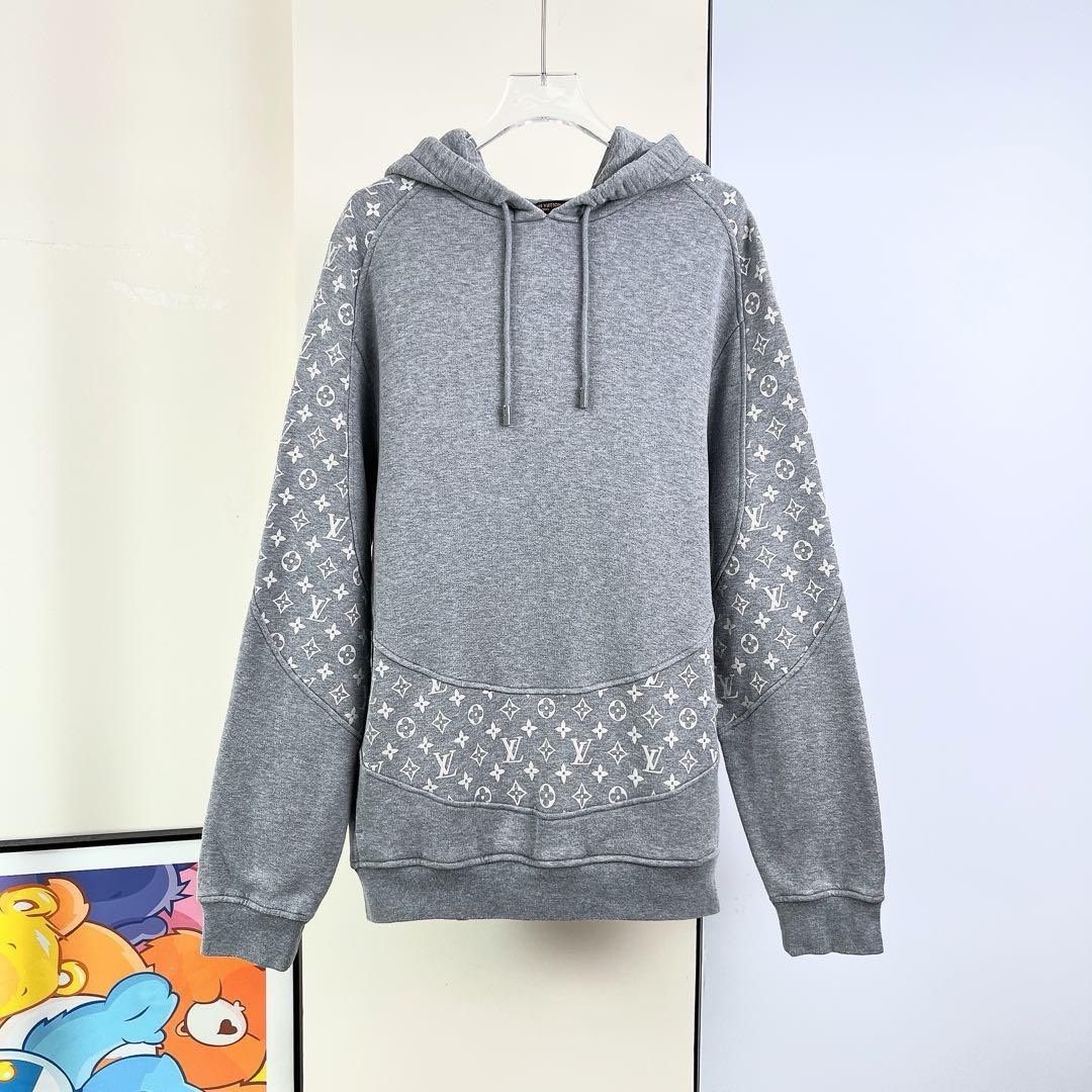 LOUIS VUITTON Grey Monogram Patchwork Hooded Sweatshirt