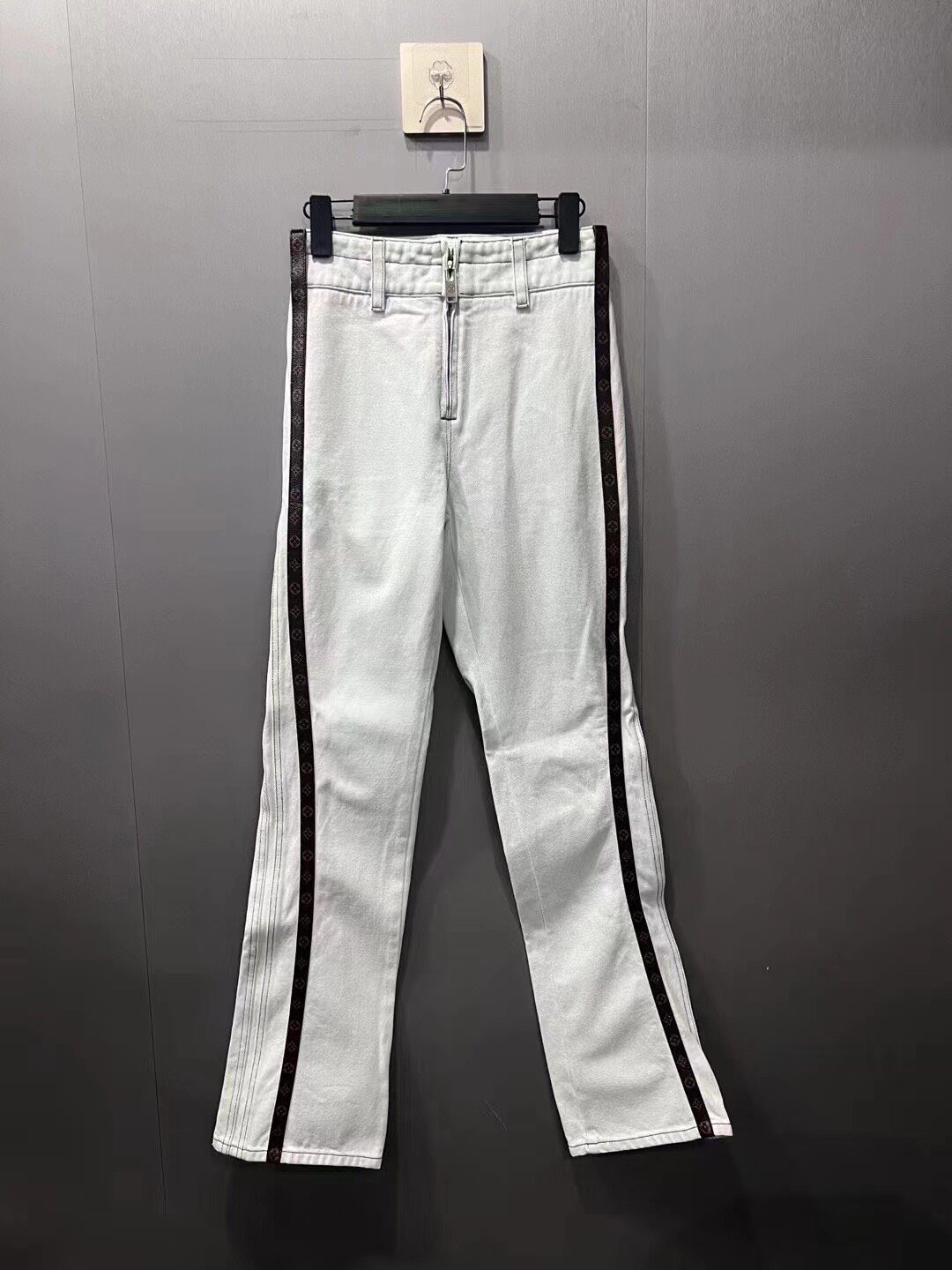 Louis Vuitton High-Waisted Jeans with Monogram Logo and Leather Paneling
