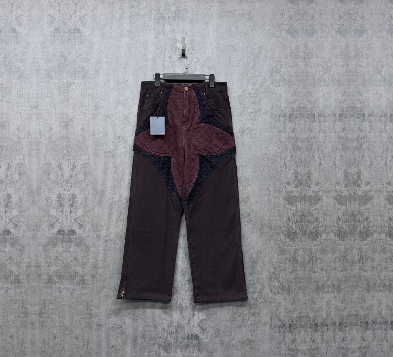 Louis Vuitton jeans with embroidered logo on three floral patterns