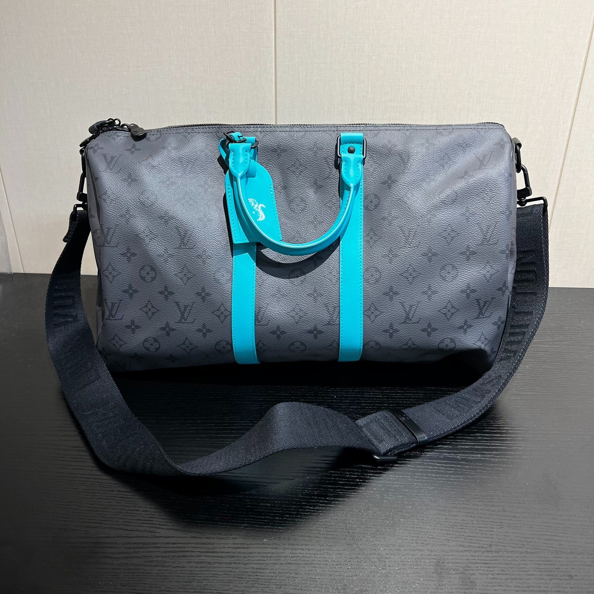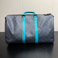 Louis Vuitton Keepall 45 Grey and Blue Monogram All-Logo Travel Bag/Crossbody Bag