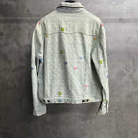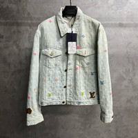 Louis Vuitton light blue logo letter embroidered lapel single-breasted long-sleeved denim jacket