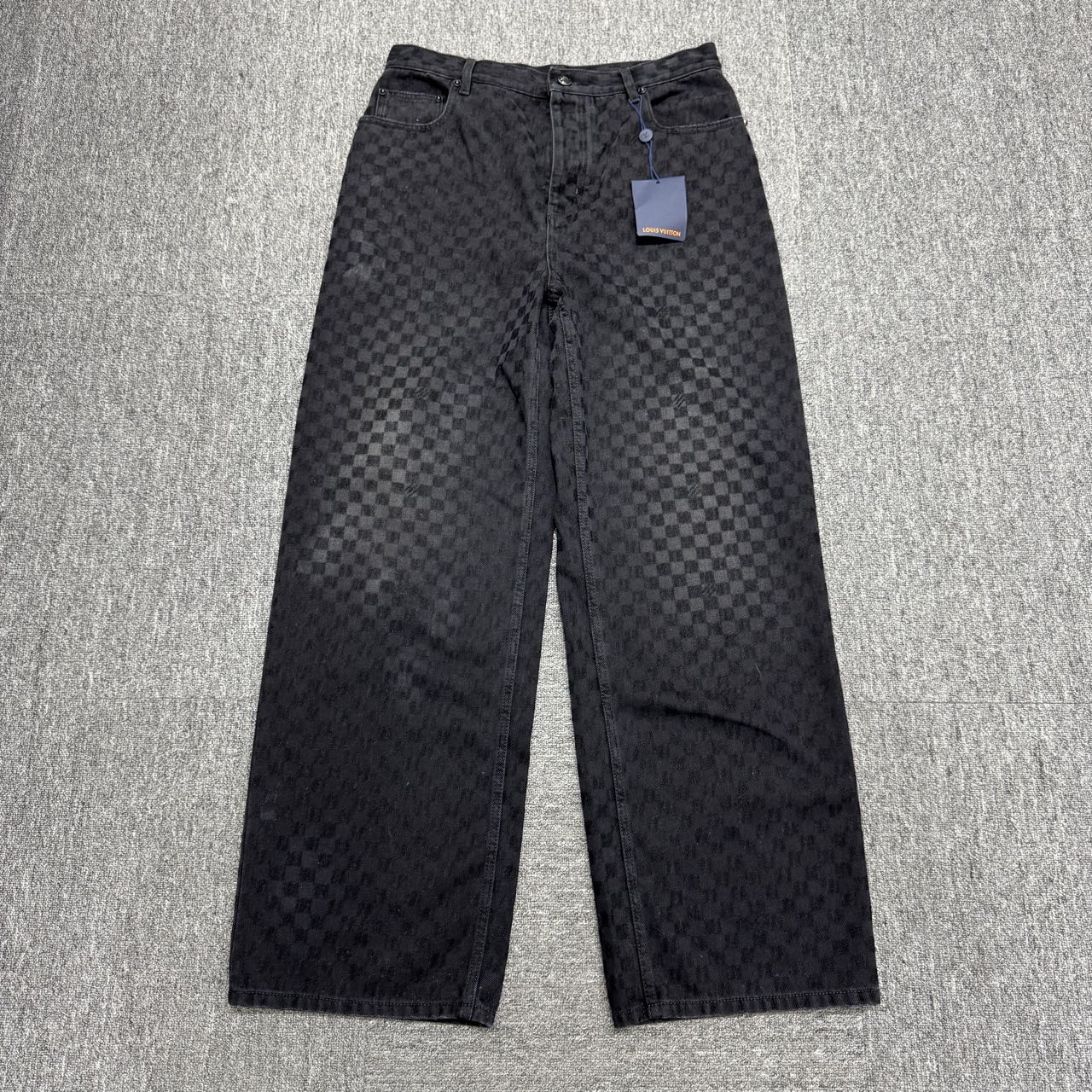 louis vuitton lv 25ss black grey checkerboard jeans