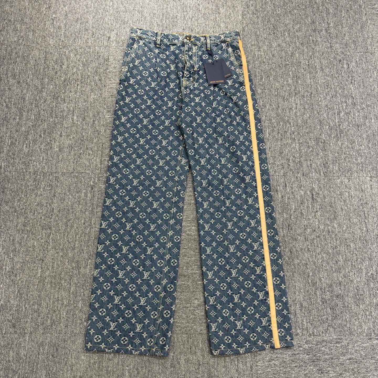 louis vuitton lv all over print monogram patchwork leather jeans