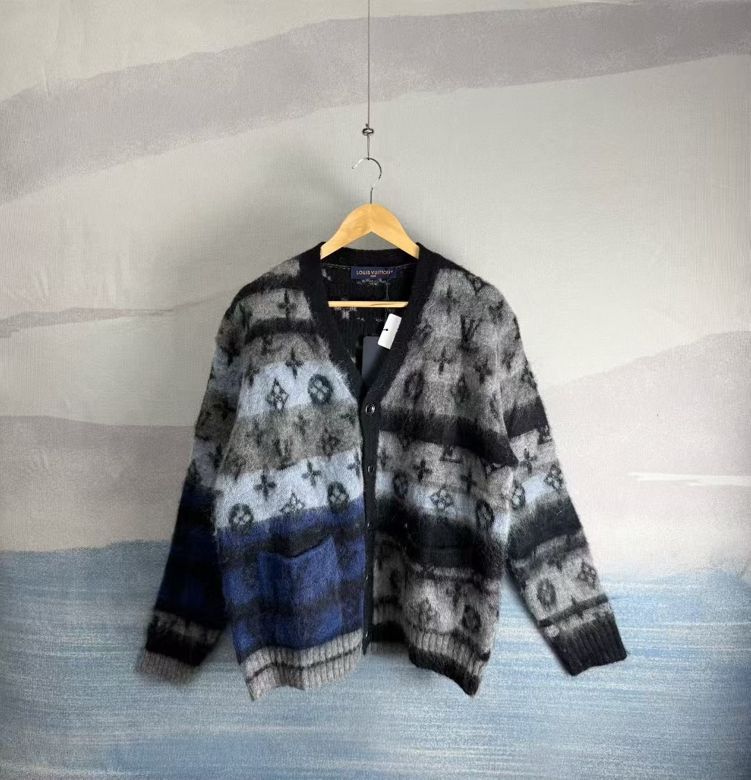 Louis Vuitton LV black and blue all-over print mohair cardigan