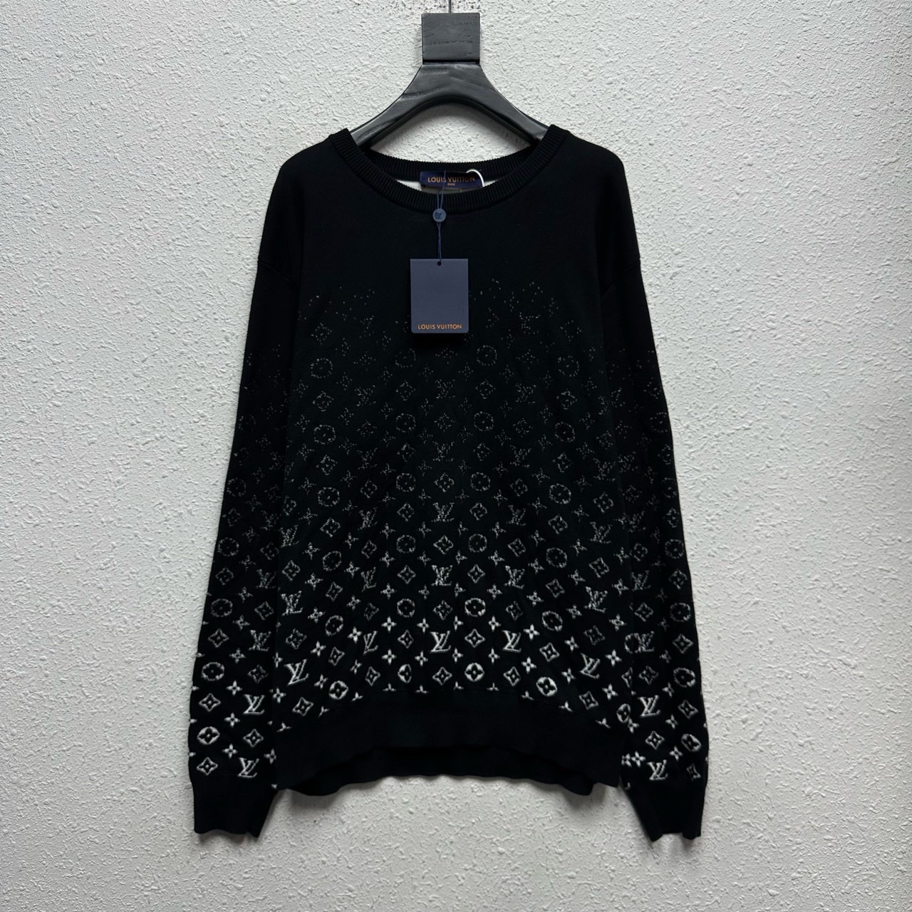 LOUIS VUITTON LV black and white gradient LOGO knitted pullover sweatshirt