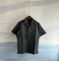 Louis Vuitton LV Black Silk Monogram Dark Pattern Short Sleeve Shirt