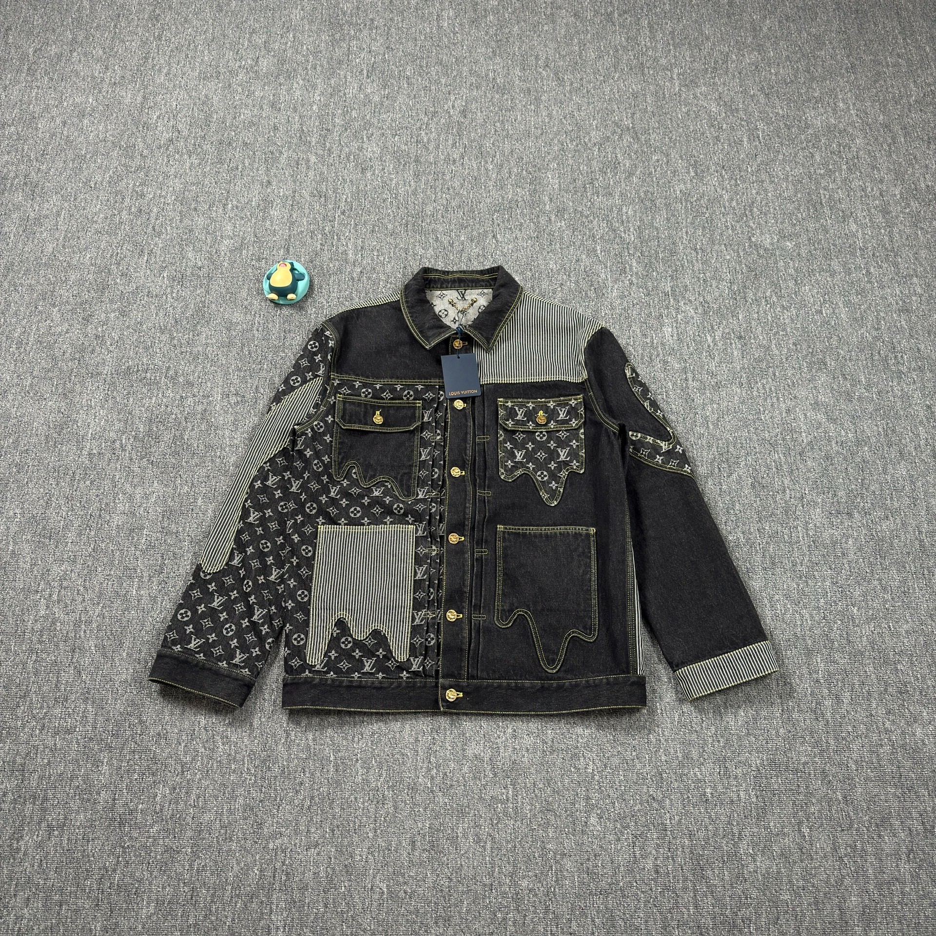Louis Vuitton LV Black Structured Patchwork Monogram Denim Jacket