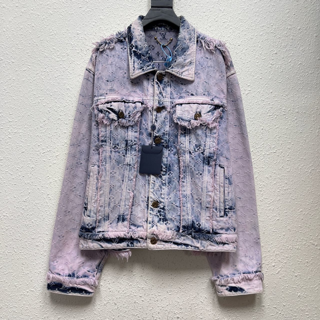 LOUIS VUITTON LV destroyed tassel printed denim jacket