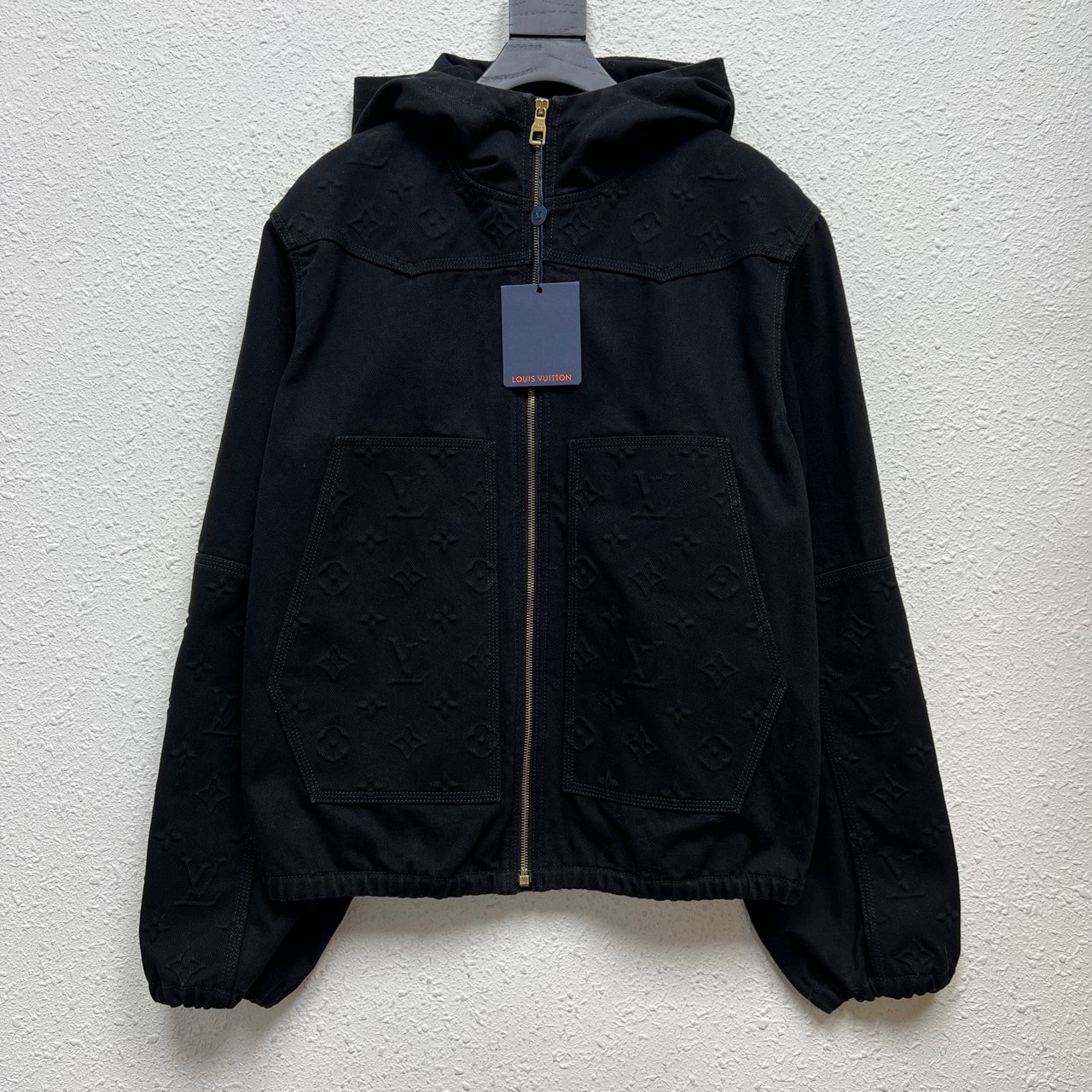LOUIS VUITTON LV Embossed Logo Logging Denim Zip-Up Jacket