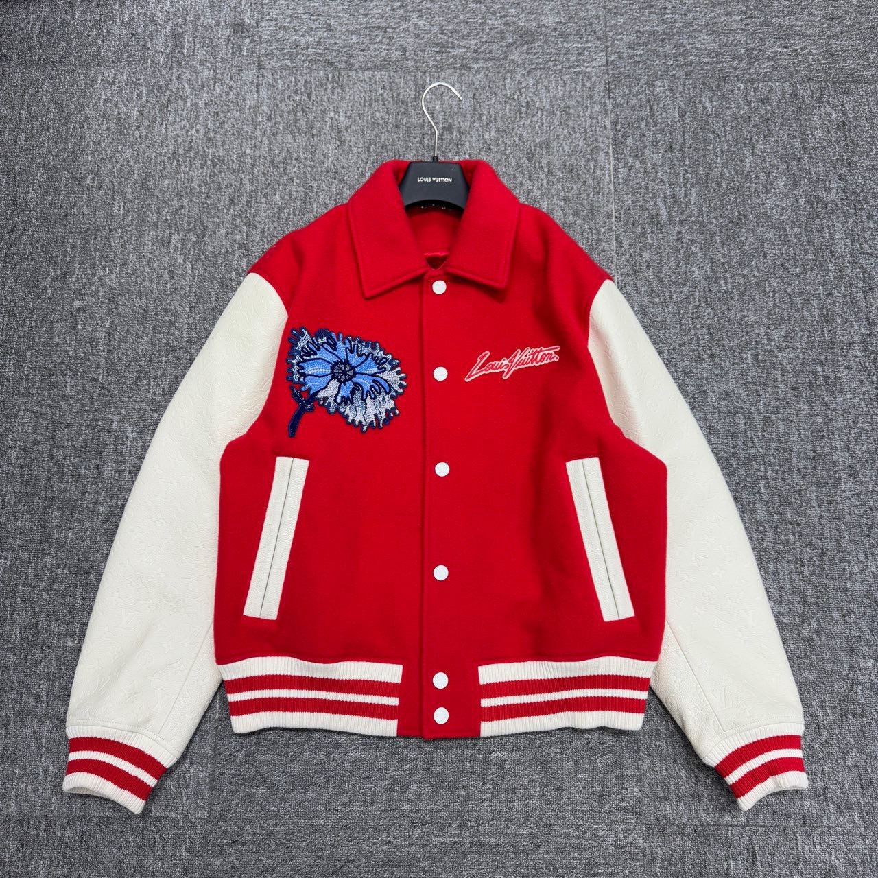 Louis Vuitton LV embroidered pattern patchwork leather baseball jacket
