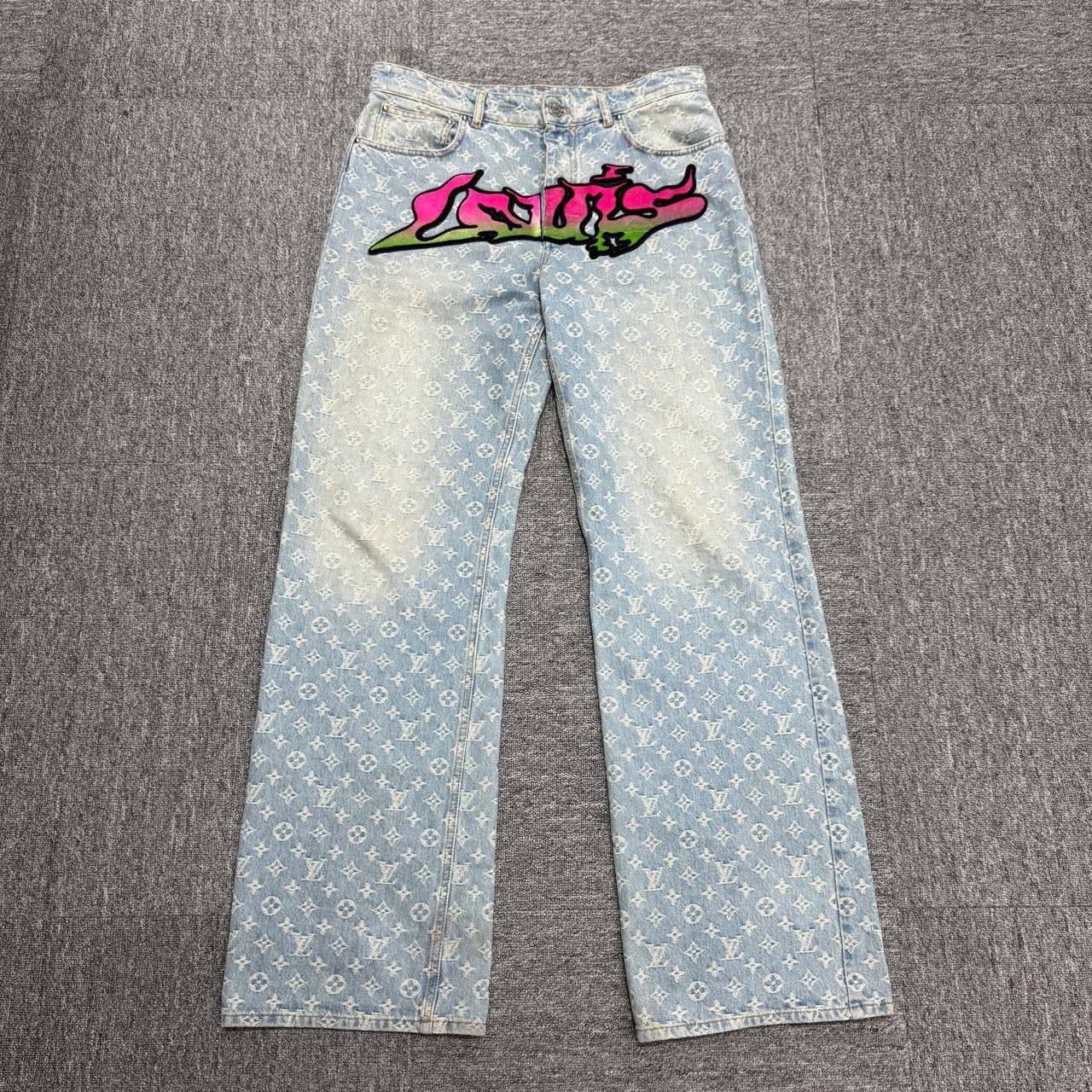 Louis Vuitton LV flocked flame pattern all-over monogram jeans