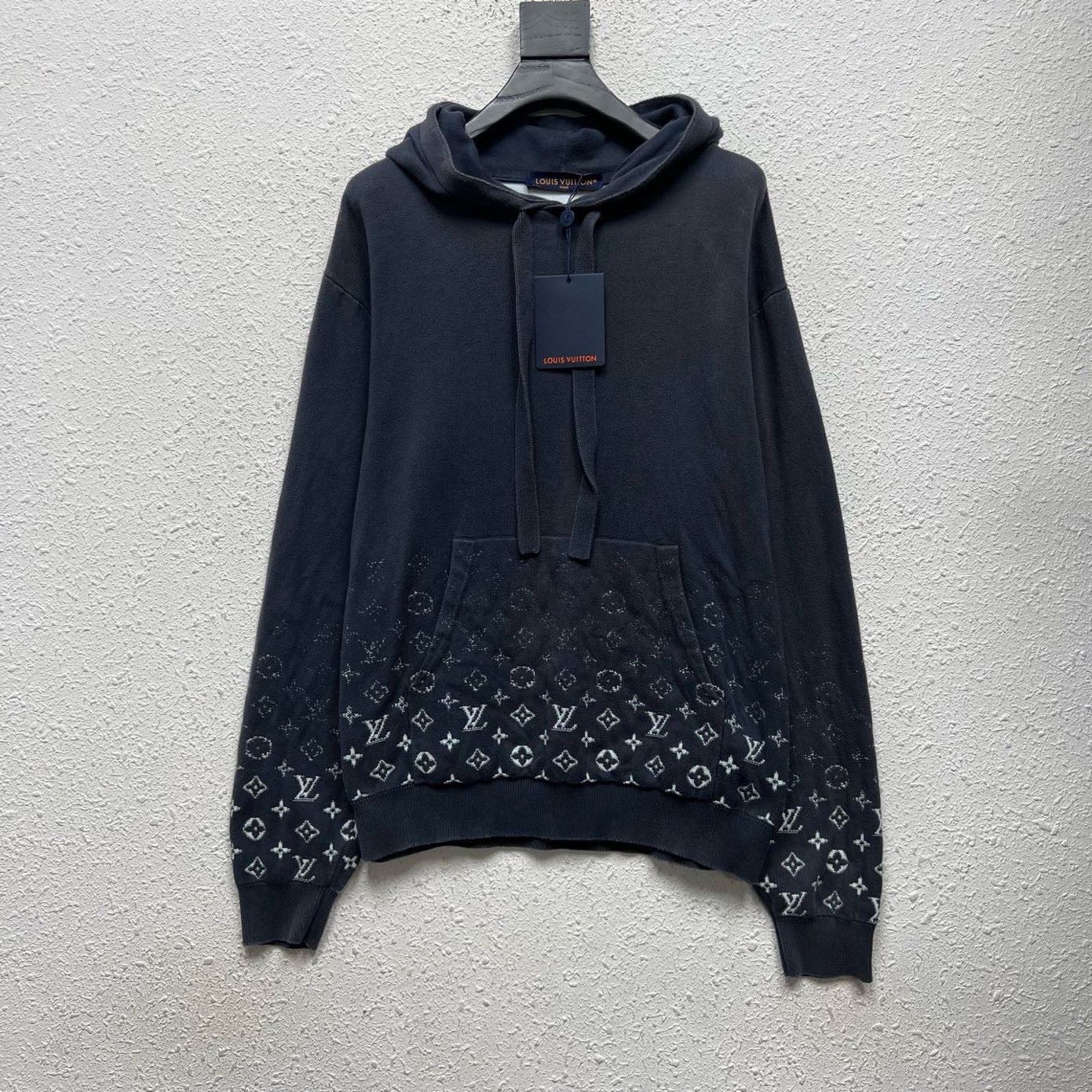 Louis Vuitton LV Gradient Monogram Logo Light Grey Knitted Hooded Sweatshirt