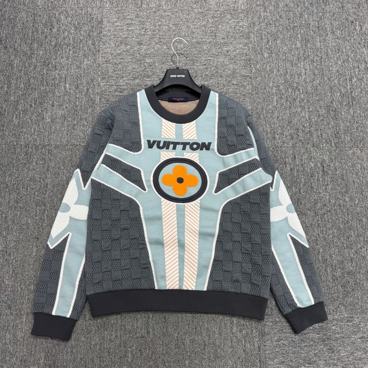 Louis vuitton lv jacquard check seam knitted sweatshirt