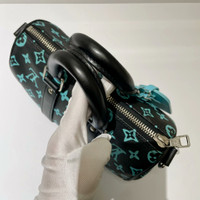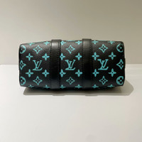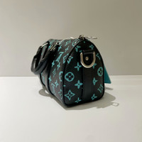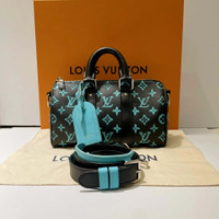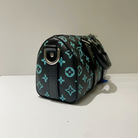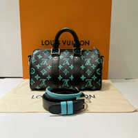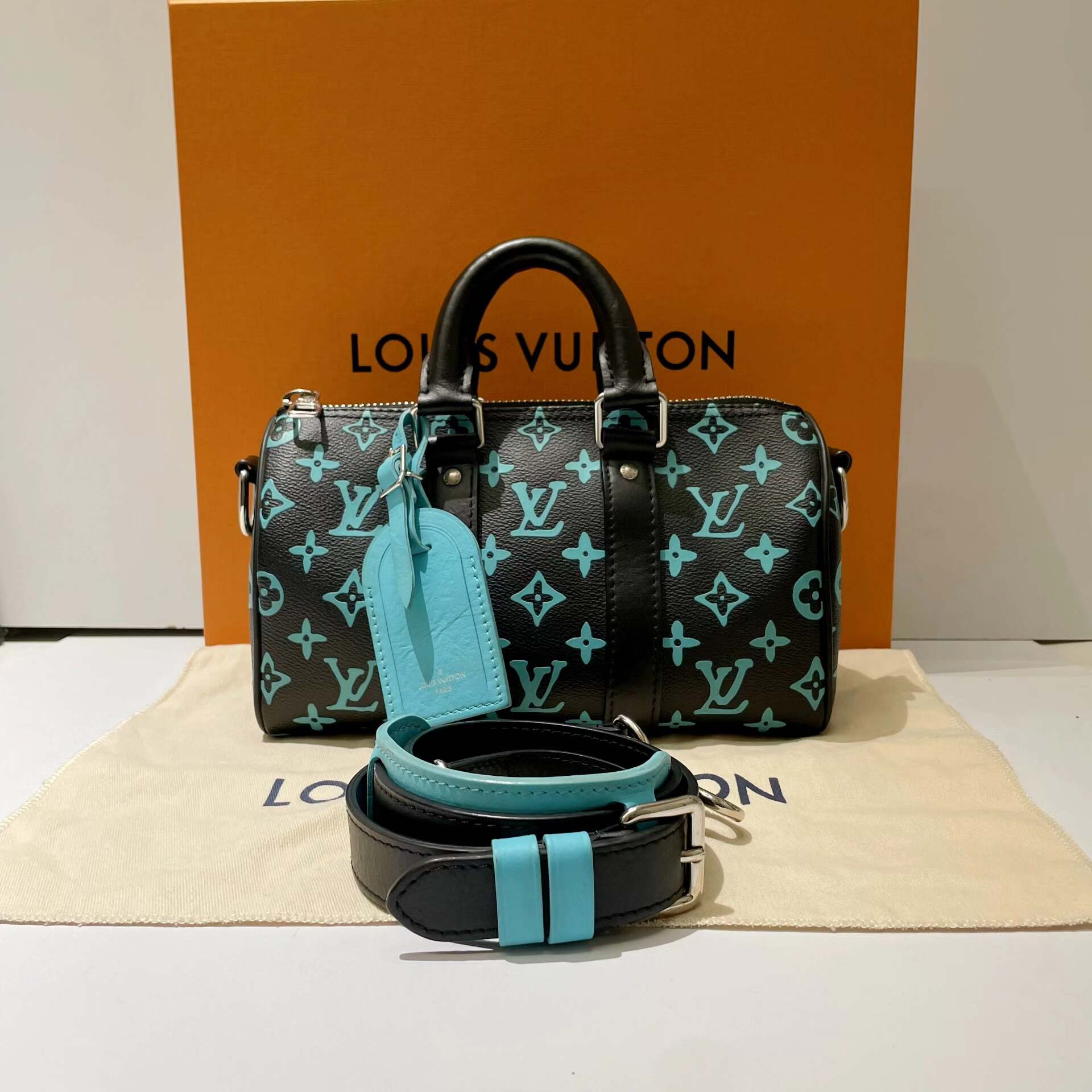 Louis Vuitton LV Keepall 25, Black with Tiffany Blue monogram, with microchip.