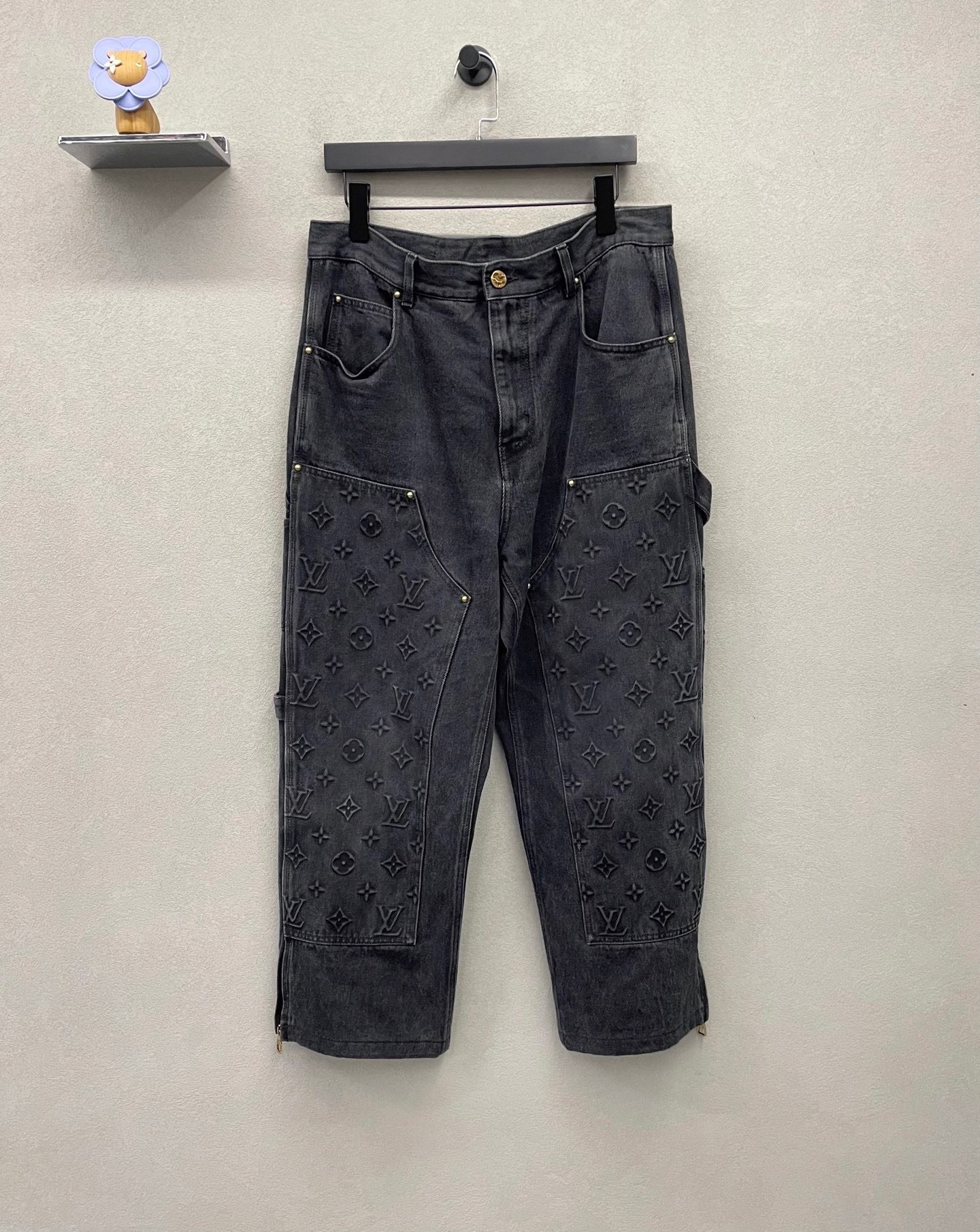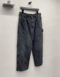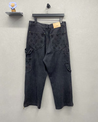 Louis Vuitton (LV) Logging Black Distressed Denim Work Pants