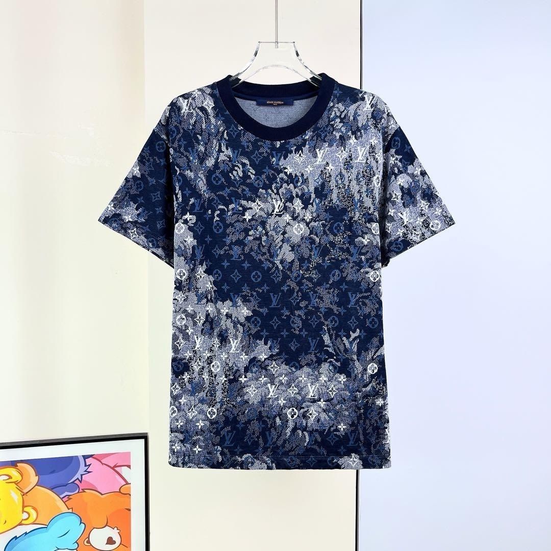Louis Vuitton LV navy blue tie-dye monogram short-sleeved shirt