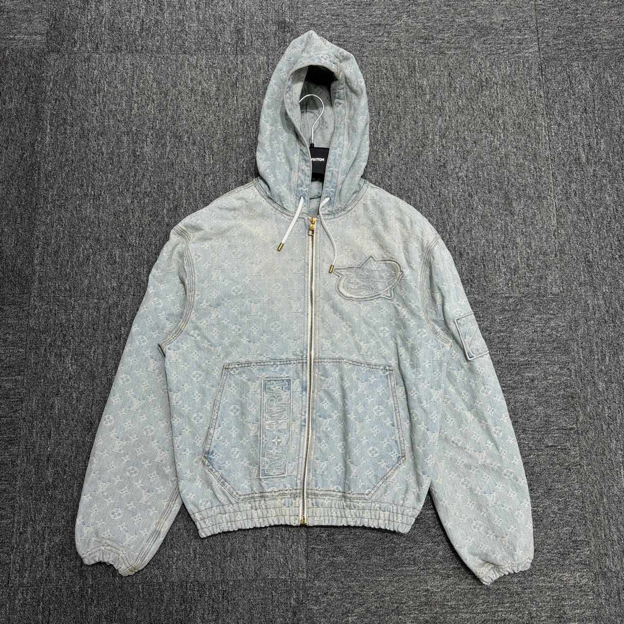 Louis Vuitton LV NBA Monogram Denim Jacket with All-over Print and Hood