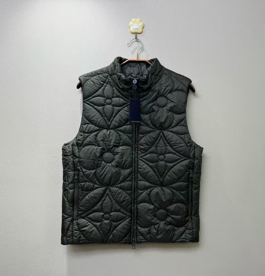 LOUIS VUITTON LV New Black and Green All-Logo Embossed Floral Cotton Vest