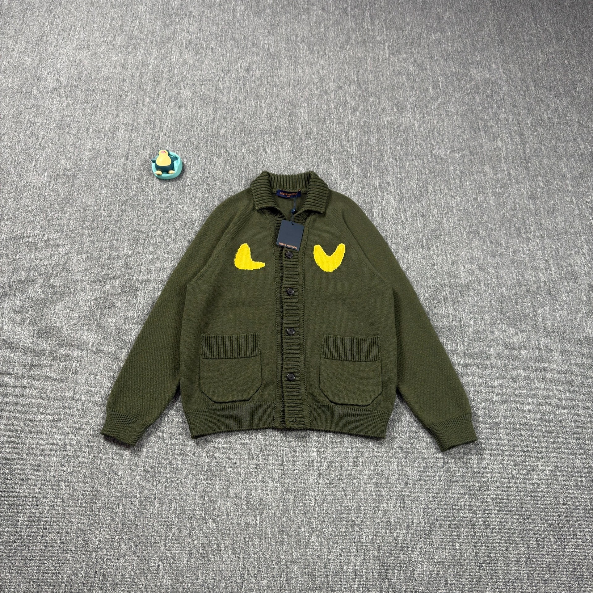 Louis Vuitton LV Nigo Collaboration Olive Green Geometric Pattern Cardigan