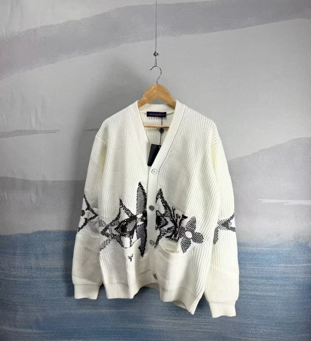 Louis Vuitton LV Ski Collection White Floral Wool Cardigan