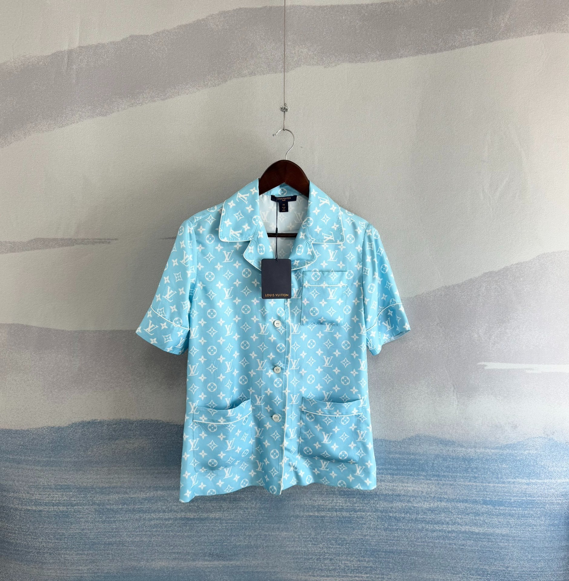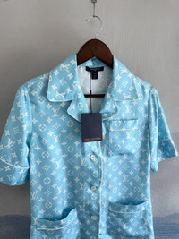 Louis Vuitton LV Sky Blue Silk All-over Print Short-Sleeve Shirt