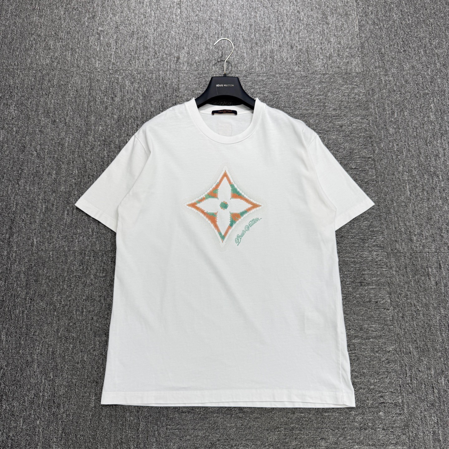 Louis Vuitton LV SS25 four-leaf clover rhinestone short-sleeved shirt