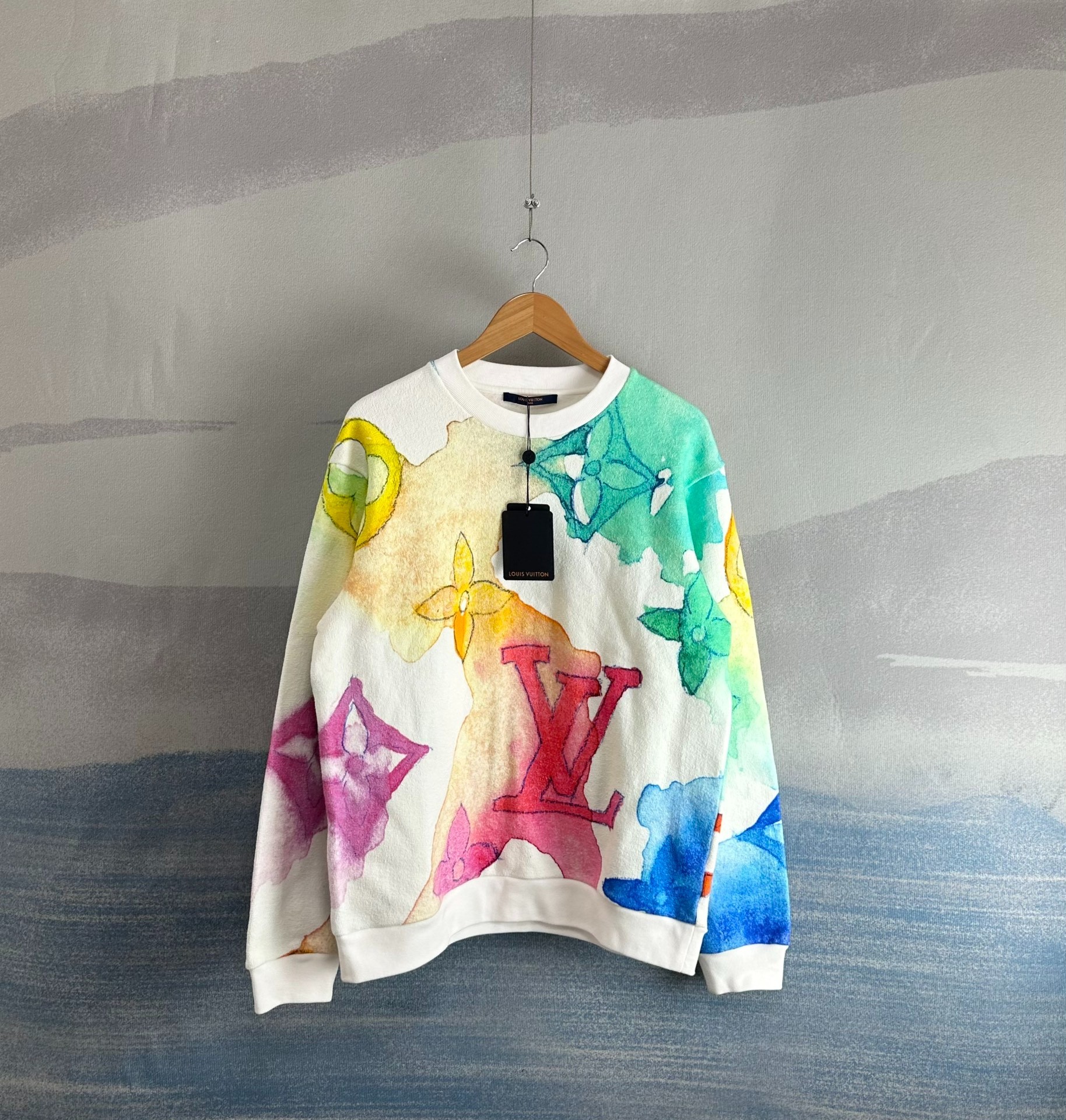 Louis Vuitton (LV) towel hoodie with all-over ink print design.