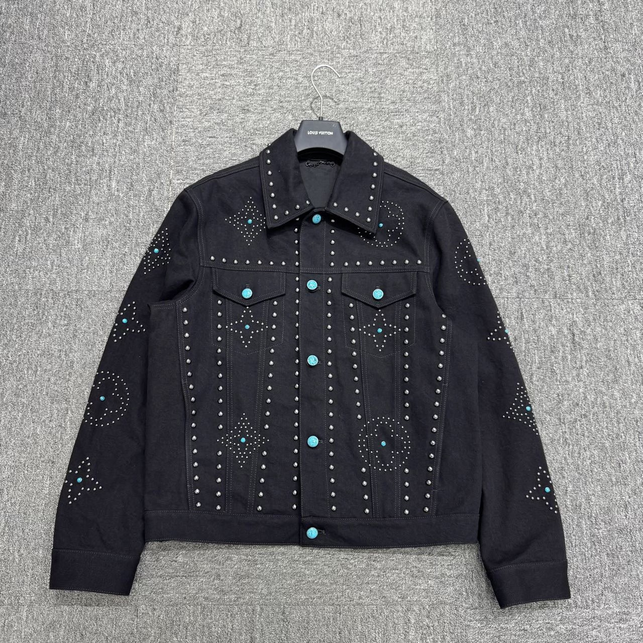 Louis vuitton lv turquoise studded denim jacket